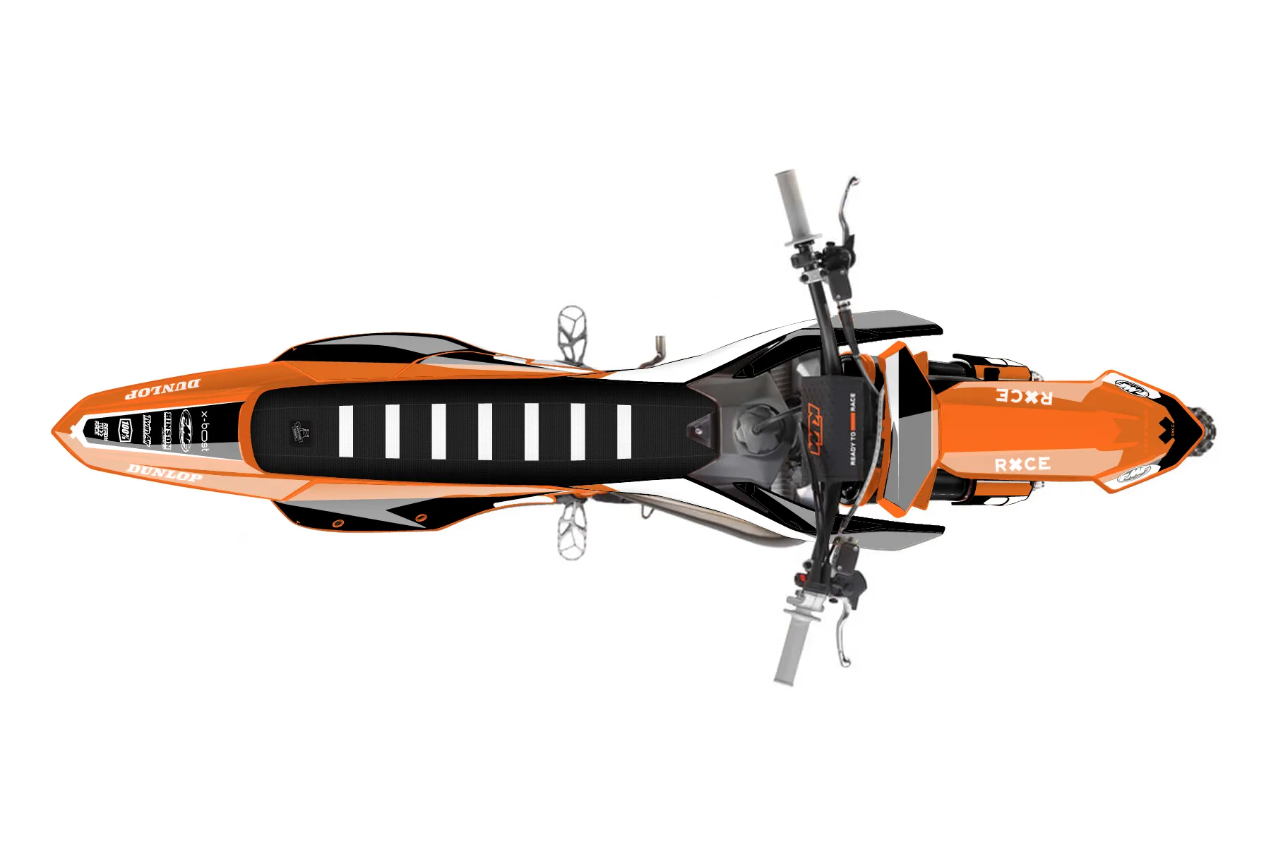«Race» — готовый комплект графики серии Flow для KTM MX Graphic Kit KTM SX 300 2023. В комплекте: графика на бак и боковые облицовки, крылья (переднее и заднее), передний щиток, номерные таблички, защита вилки. Материал: ПВХ-винил 80 мкр с холодной ламинацией 300 мкр, общая толщина 380 мкр; покрытие глянцевое или матовое на выбор. Устойчив к UV-излучению, воде, бензину и мойке высокого давления. Клей акриловый на сольвентной основе — постоянный, для гибких пластиков. На простых поверхностях монтируется без нагрева; для сложных изгибов рекомендуем фен. Этот пресет можно заказать как есть или взять за основу в конструкторе: поменять цвета, добавить стартовый номер и свой бренд. Производство — 3–5 рабочих дней, доставка по России СДЭКом или Почтой, по СНГ — курьерскими службами.
