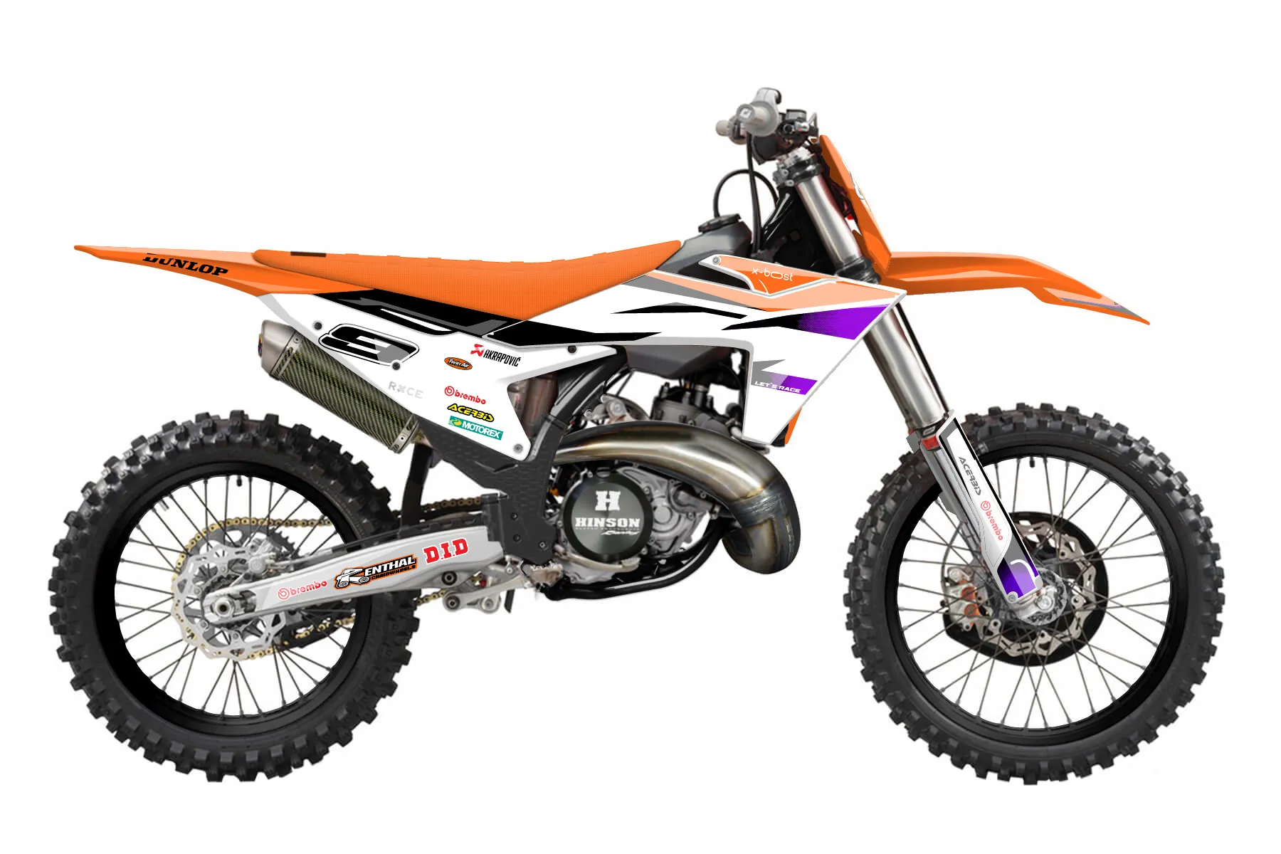 «Poto» — готовый комплект графики серии Fusion для KTM MX Graphic Kit KTM SX 300 2023. В комплекте: графика на бак и боковые облицовки, крылья (переднее и заднее), передний щиток, номерные таблички, защита вилки. Материал: ПВХ-винил 80 мкр с холодной ламинацией 300 мкр, общая толщина 380 мкр; покрытие глянцевое или матовое на выбор. Устойчив к UV-излучению, воде, бензину и мойке высокого давления. Клей акриловый на сольвентной основе — постоянный, для гибких пластиков. На простых поверхностях монтируется без нагрева; для сложных изгибов рекомендуем фен. Этот пресет можно заказать как есть или взять за основу в конструкторе: поменять цвета, добавить стартовый номер и свой бренд. Производство — 3–5 рабочих дней, доставка по России СДЭКом или Почтой, по СНГ — курьерскими службами.