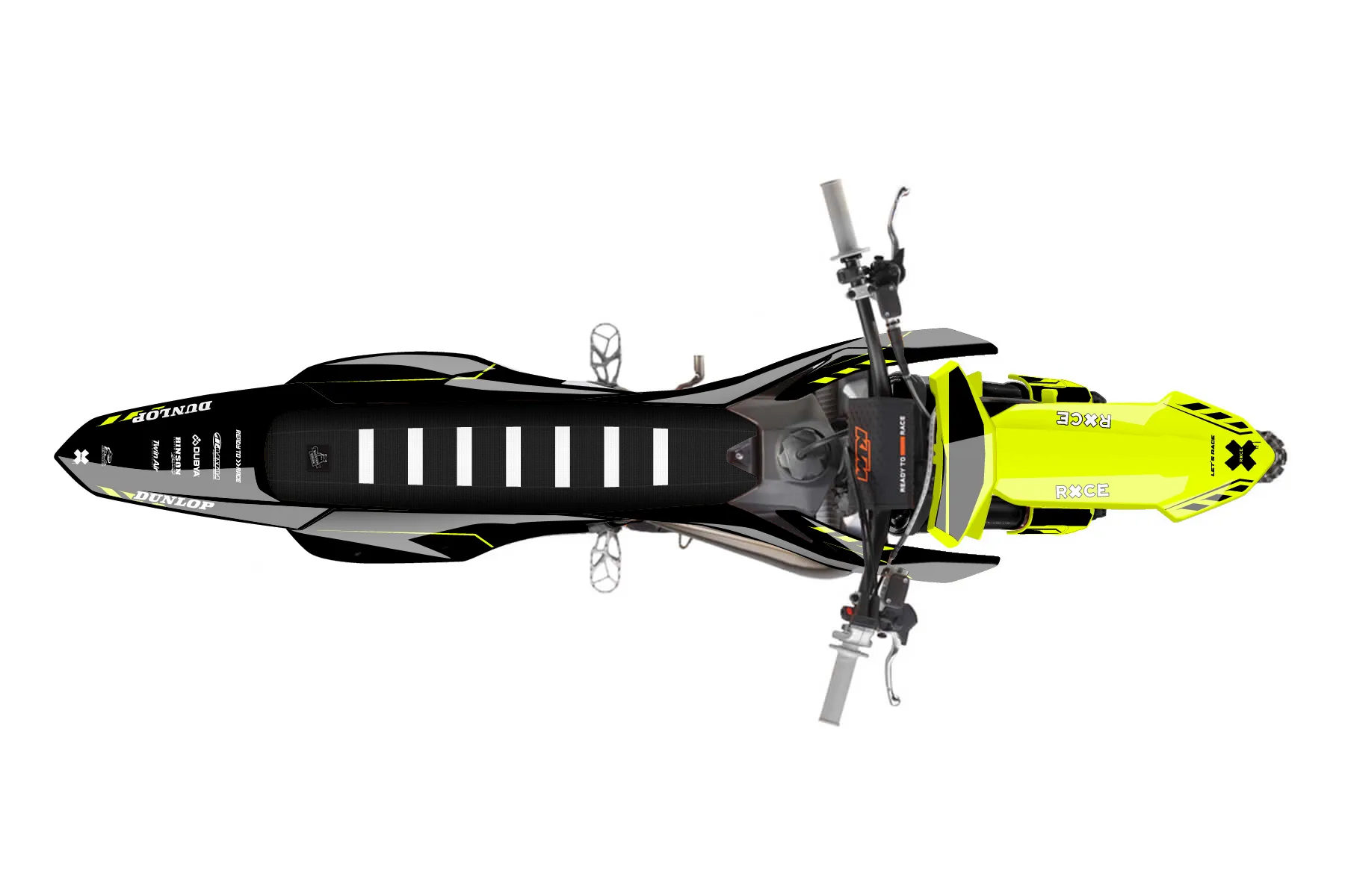 «Kitted Neon» — готовый комплект графики серии Maverick для KTM MX Graphic Kit KTM SX 300 2023. В комплекте: графика на бак и боковые облицовки, крылья (переднее и заднее), передний щиток, номерные таблички, защита вилки. Материал: ПВХ-винил 80 мкр с холодной ламинацией 300 мкр, общая толщина 380 мкр; покрытие глянцевое или матовое на выбор. Устойчив к UV-излучению, воде, бензину и мойке высокого давления. Клей акриловый на сольвентной основе — постоянный, для гибких пластиков. На простых поверхностях монтируется без нагрева; для сложных изгибов рекомендуем фен. Этот пресет можно заказать как есть или взять за основу в конструкторе: поменять цвета, добавить стартовый номер и свой бренд. Производство — 3–5 рабочих дней, доставка по России СДЭКом или Почтой, по СНГ — курьерскими службами.