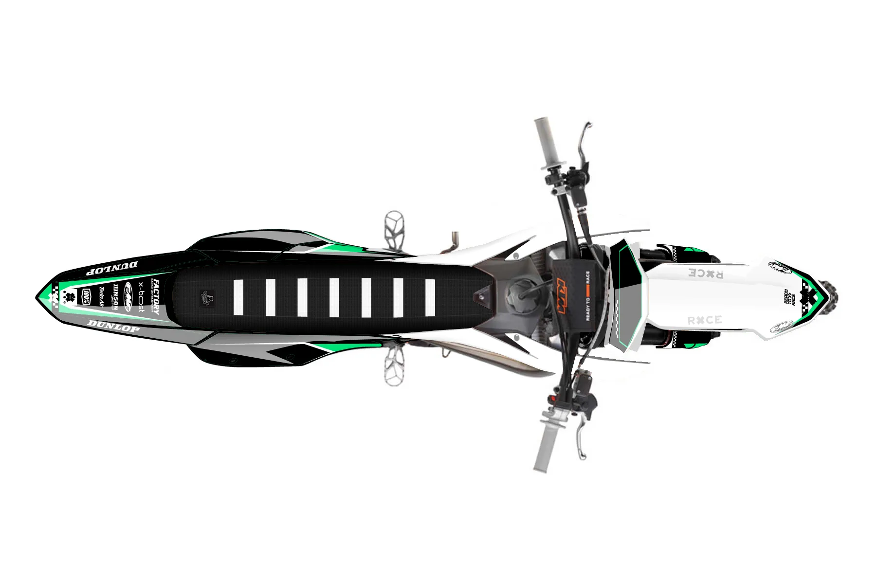 «Supervision» — готовый комплект графики серии Staple для KTM MX Graphic Kit KTM SX 300 2023. В комплекте: графика на бак и боковые облицовки, крылья (переднее и заднее), передний щиток, номерные таблички, защита вилки. Материал: ПВХ-винил 80 мкр с холодной ламинацией 300 мкр, общая толщина 380 мкр; покрытие глянцевое или матовое на выбор. Устойчив к UV-излучению, воде, бензину и мойке высокого давления. Клей акриловый на сольвентной основе — постоянный, для гибких пластиков. На простых поверхностях монтируется без нагрева; для сложных изгибов рекомендуем фен. Этот пресет можно заказать как есть или взять за основу в конструкторе: поменять цвета, добавить стартовый номер и свой бренд. Производство — 3–5 рабочих дней, доставка по России СДЭКом или Почтой, по СНГ — курьерскими службами.
