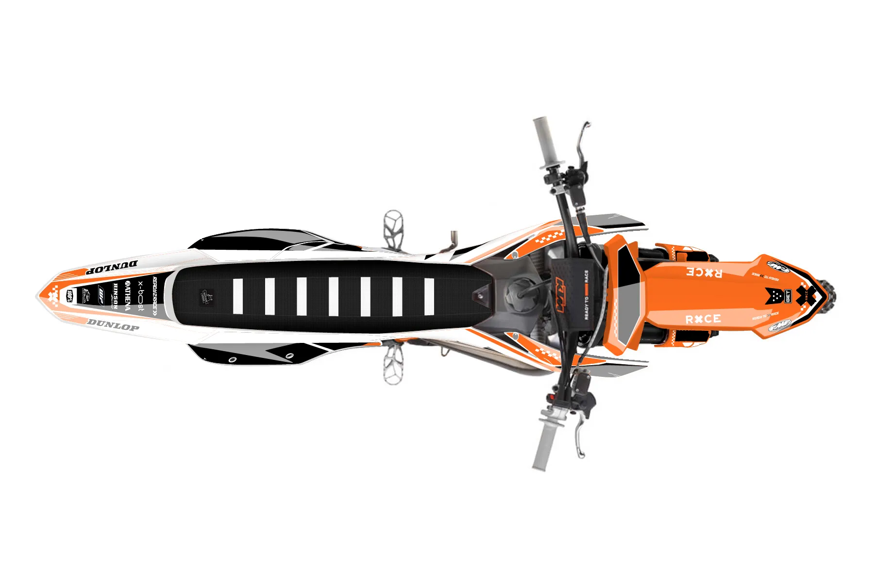 «Warp» — готовый комплект графики серии Staple для KTM MX Graphic Kit KTM SX 300 2023. В комплекте: графика на бак и боковые облицовки, крылья (переднее и заднее), передний щиток, номерные таблички, защита вилки. Материал: ПВХ-винил 80 мкр с холодной ламинацией 300 мкр, общая толщина 380 мкр; покрытие глянцевое или матовое на выбор. Устойчив к UV-излучению, воде, бензину и мойке высокого давления. Клей акриловый на сольвентной основе — постоянный, для гибких пластиков. На простых поверхностях монтируется без нагрева; для сложных изгибов рекомендуем фен. Этот пресет можно заказать как есть или взять за основу в конструкторе: поменять цвета, добавить стартовый номер и свой бренд. Производство — 3–5 рабочих дней, доставка по России СДЭКом или Почтой, по СНГ — курьерскими службами.