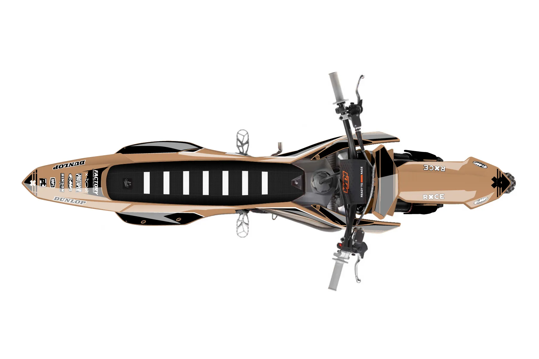 «Entire» — готовый комплект графики серии Untucked для KTM MX Graphic Kit KTM SX 300 2023. В комплекте: графика на бак и боковые облицовки, крылья (переднее и заднее), передний щиток, номерные таблички, защита вилки. Материал: ПВХ-винил 80 мкр с холодной ламинацией 300 мкр, общая толщина 380 мкр; покрытие глянцевое или матовое на выбор. Устойчив к UV-излучению, воде, бензину и мойке высокого давления. Клей акриловый на сольвентной основе — постоянный, для гибких пластиков. На простых поверхностях монтируется без нагрева; для сложных изгибов рекомендуем фен. Этот пресет можно заказать как есть или взять за основу в конструкторе: поменять цвета, добавить стартовый номер и свой бренд. Производство — 3–5 рабочих дней, доставка по России СДЭКом или Почтой, по СНГ — курьерскими службами.