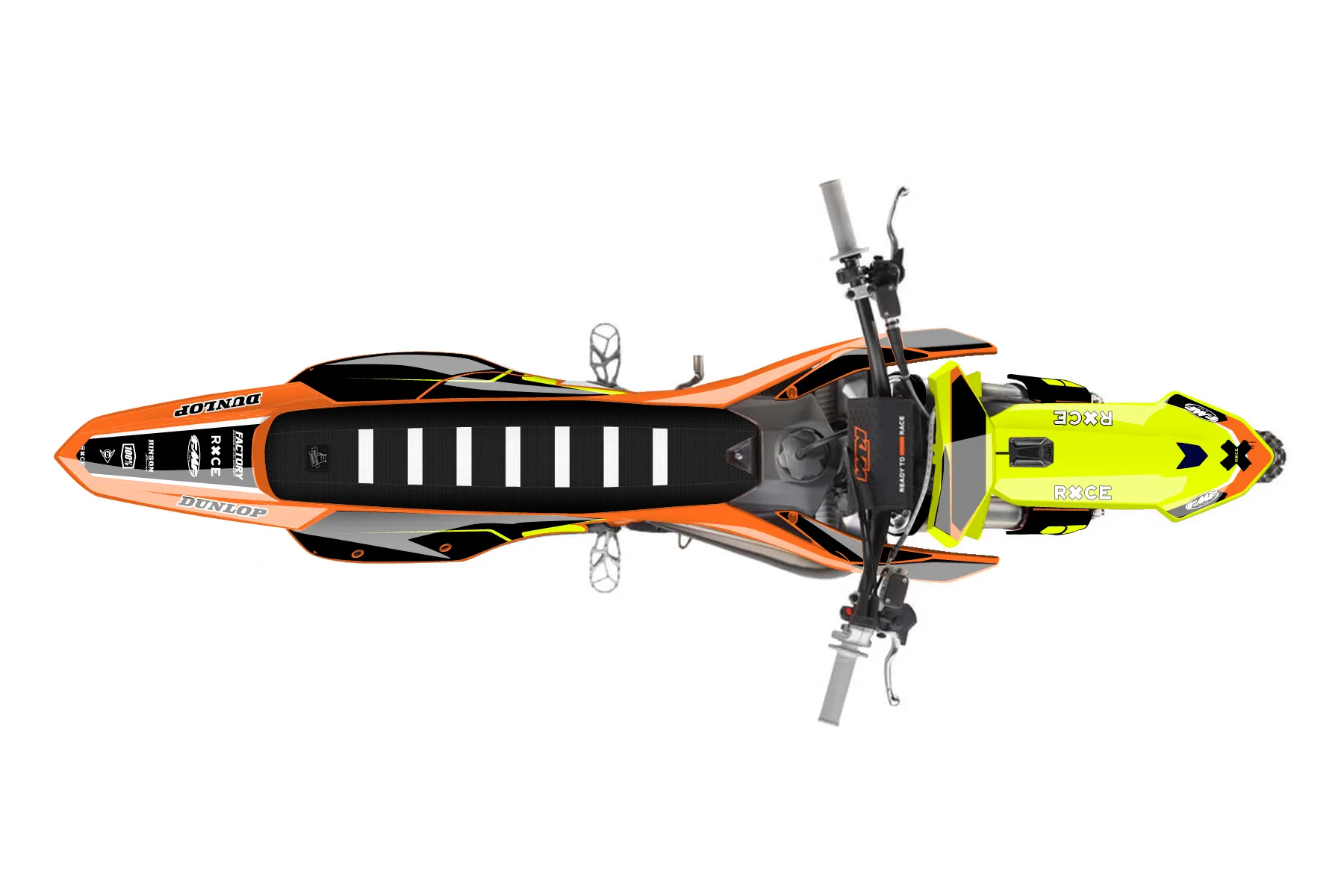 «Fluorescent» — готовый комплект графики серии Flow для KTM MX Graphic Kit KTM SX 300 2026. В комплекте: графика на бак и боковые облицовки, крылья (переднее и заднее), передний щиток, номерные таблички, защита вилки. Материал: ПВХ-винил 80 мкр с холодной ламинацией 300 мкр, общая толщина 380 мкр; покрытие глянцевое или матовое на выбор. Устойчив к UV-излучению, воде, бензину и мойке высокого давления. Клей акриловый на сольвентной основе — постоянный, для гибких пластиков. На простых поверхностях монтируется без нагрева; для сложных изгибов рекомендуем фен. Этот пресет можно заказать как есть или взять за основу в конструкторе: поменять цвета, добавить стартовый номер и свой бренд. Производство — 3–5 рабочих дней, доставка по России СДЭКом или Почтой, по СНГ — курьерскими службами.