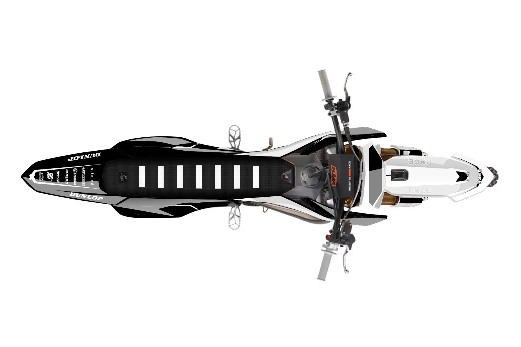 «Pattern» — готовый комплект графики серии Flow для KTM MX Graphic Kit KTM SX 300 2026. В комплекте: графика на бак и боковые облицовки, крылья (переднее и заднее), передний щиток, номерные таблички, защита вилки. Материал: ПВХ-винил 80 мкр с холодной ламинацией 300 мкр, общая толщина 380 мкр; покрытие глянцевое или матовое на выбор. Устойчив к UV-излучению, воде, бензину и мойке высокого давления. Клей акриловый на сольвентной основе — постоянный, для гибких пластиков. На простых поверхностях монтируется без нагрева; для сложных изгибов рекомендуем фен. Этот пресет можно заказать как есть или взять за основу в конструкторе: поменять цвета, добавить стартовый номер и свой бренд. Производство — 3–5 рабочих дней, доставка по России СДЭКом или Почтой, по СНГ — курьерскими службами.