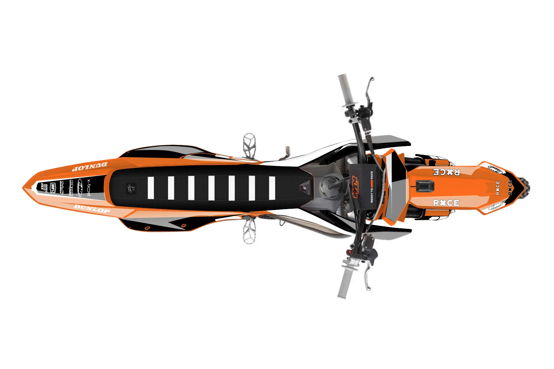«Race» — готовый комплект графики серии Flow для KTM MX Graphic Kit KTM SX 300 2026. В комплекте: графика на бак и боковые облицовки, крылья (переднее и заднее), передний щиток, номерные таблички, защита вилки. Материал: ПВХ-винил 80 мкр с холодной ламинацией 300 мкр, общая толщина 380 мкр; покрытие глянцевое или матовое на выбор. Устойчив к UV-излучению, воде, бензину и мойке высокого давления. Клей акриловый на сольвентной основе — постоянный, для гибких пластиков. На простых поверхностях монтируется без нагрева; для сложных изгибов рекомендуем фен. Этот пресет можно заказать как есть или взять за основу в конструкторе: поменять цвета, добавить стартовый номер и свой бренд. Производство — 3–5 рабочих дней, доставка по России СДЭКом или Почтой, по СНГ — курьерскими службами.