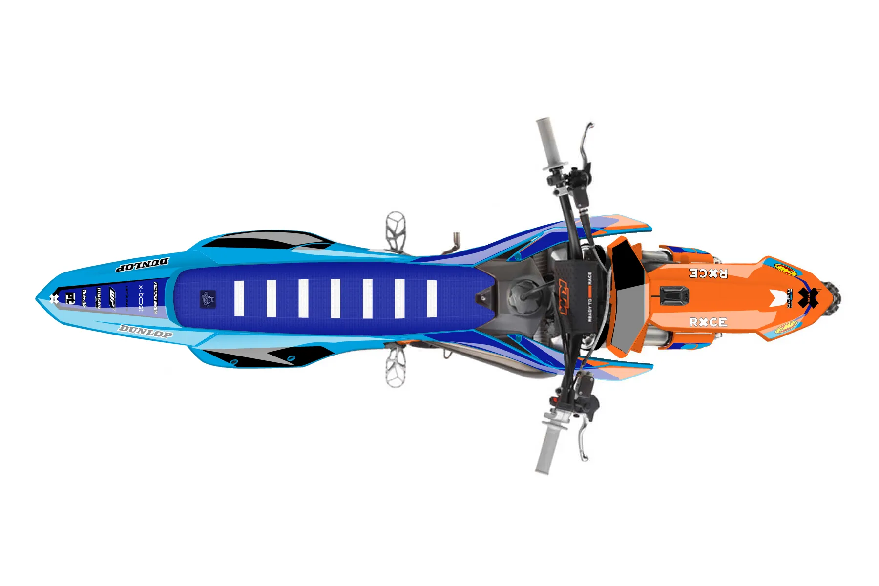 «Signature» — готовый комплект графики серии Flow для KTM MX Graphic Kit KTM SX 300 2026. В комплекте: графика на бак и боковые облицовки, крылья (переднее и заднее), передний щиток, номерные таблички, защита вилки. Материал: ПВХ-винил 80 мкр с холодной ламинацией 300 мкр, общая толщина 380 мкр; покрытие глянцевое или матовое на выбор. Устойчив к UV-излучению, воде, бензину и мойке высокого давления. Клей акриловый на сольвентной основе — постоянный, для гибких пластиков. На простых поверхностях монтируется без нагрева; для сложных изгибов рекомендуем фен. Этот пресет можно заказать как есть или взять за основу в конструкторе: поменять цвета, добавить стартовый номер и свой бренд. Производство — 3–5 рабочих дней, доставка по России СДЭКом или Почтой, по СНГ — курьерскими службами.