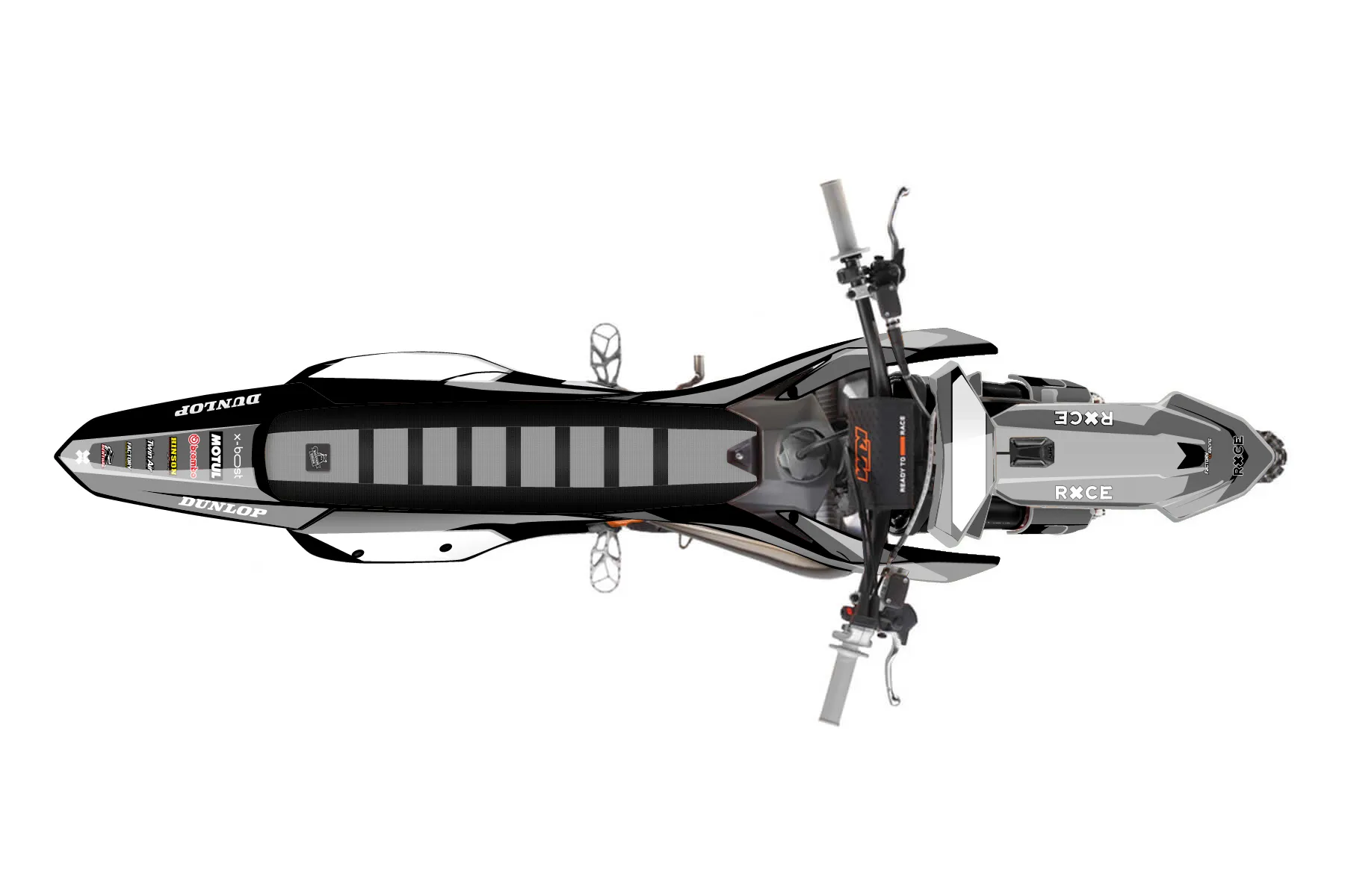 «Transworld» — готовый комплект графики серии Flow для KTM MX Graphic Kit KTM SX 300 2026. В комплекте: графика на бак и боковые облицовки, крылья (переднее и заднее), передний щиток, номерные таблички, защита вилки. Материал: ПВХ-винил 80 мкр с холодной ламинацией 300 мкр, общая толщина 380 мкр; покрытие глянцевое или матовое на выбор. Устойчив к UV-излучению, воде, бензину и мойке высокого давления. Клей акриловый на сольвентной основе — постоянный, для гибких пластиков. На простых поверхностях монтируется без нагрева; для сложных изгибов рекомендуем фен. Этот пресет можно заказать как есть или взять за основу в конструкторе: поменять цвета, добавить стартовый номер и свой бренд. Производство — 3–5 рабочих дней, доставка по России СДЭКом или Почтой, по СНГ — курьерскими службами.