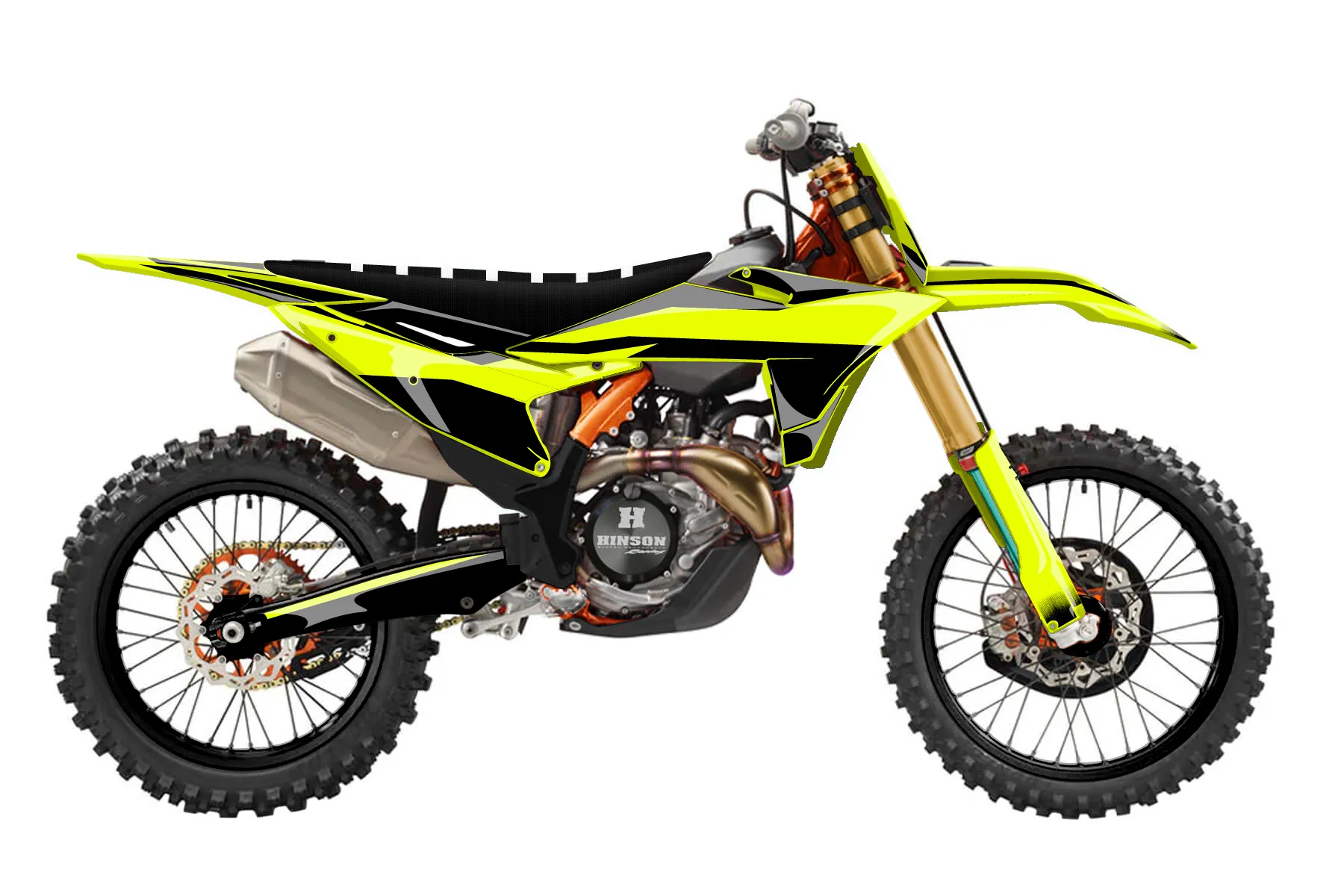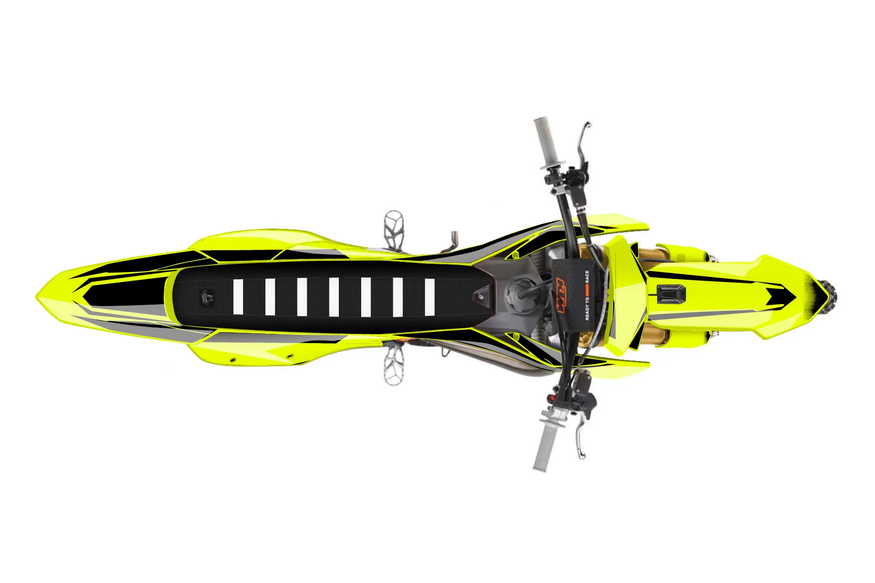 «Fuzion Fluorscent» — готовый комплект графики серии Fusion для KTM MX Graphic Kit KTM SX 300 2026. В комплекте: графика на бак и боковые облицовки, крылья (переднее и заднее), передний щиток, номерные таблички, защита вилки. Материал: ПВХ-винил 80 мкр с холодной ламинацией 300 мкр, общая толщина 380 мкр; покрытие глянцевое или матовое на выбор. Устойчив к UV-излучению, воде, бензину и мойке высокого давления. Клей акриловый на сольвентной основе — постоянный, для гибких пластиков. На простых поверхностях монтируется без нагрева; для сложных изгибов рекомендуем фен. Этот пресет можно заказать как есть или взять за основу в конструкторе: поменять цвета, добавить стартовый номер и свой бренд. Производство — 3–5 рабочих дней, доставка по России СДЭКом или Почтой, по СНГ — курьерскими службами.