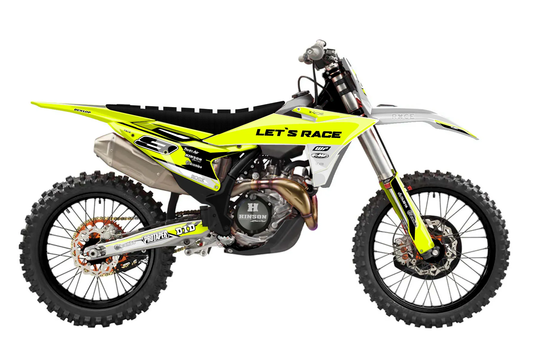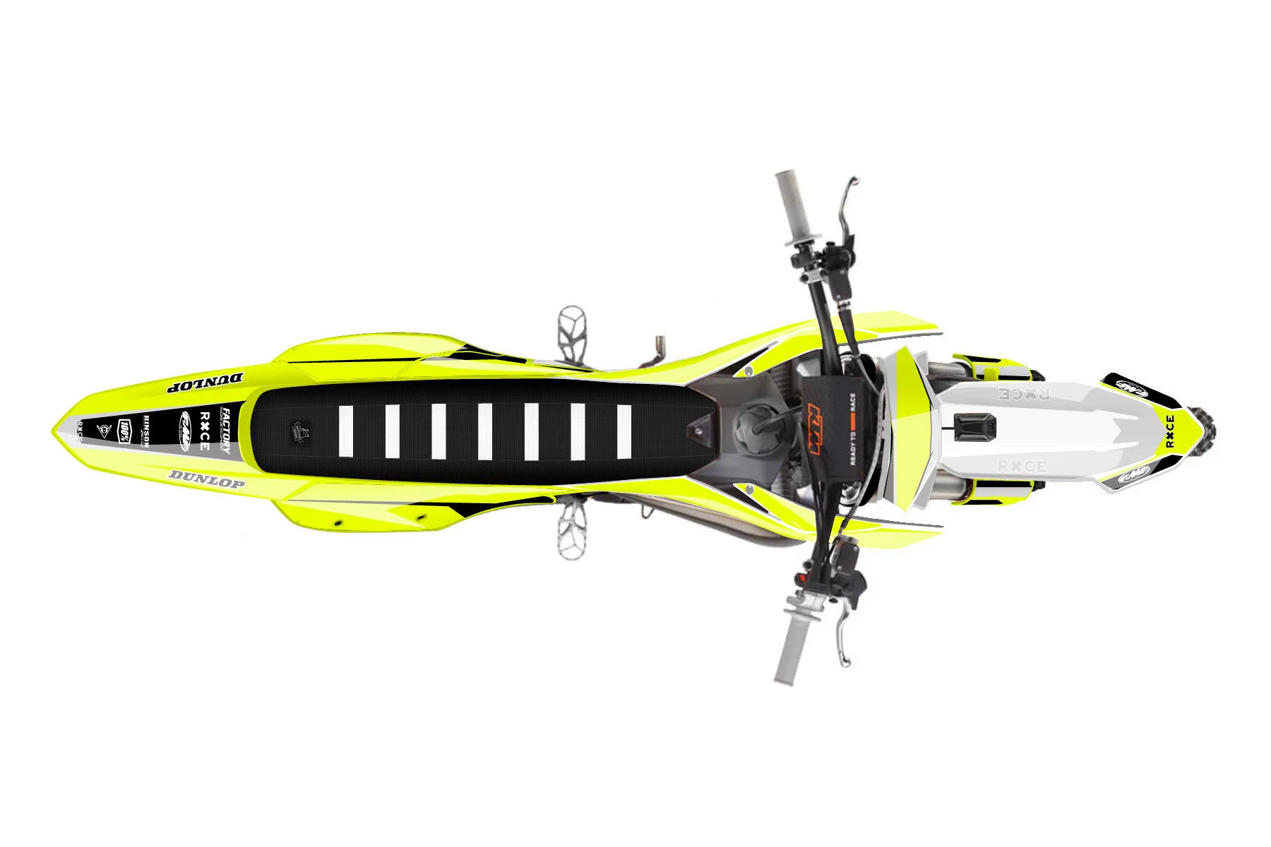 «Ryder Neon» — готовый комплект графики серии Maverick для KTM MX Graphic Kit KTM SX 300 2026. В комплекте: графика на бак и боковые облицовки, крылья (переднее и заднее), передний щиток, номерные таблички, защита вилки. Материал: ПВХ-винил 80 мкр с холодной ламинацией 300 мкр, общая толщина 380 мкр; покрытие глянцевое или матовое на выбор. Устойчив к UV-излучению, воде, бензину и мойке высокого давления. Клей акриловый на сольвентной основе — постоянный, для гибких пластиков. На простых поверхностях монтируется без нагрева; для сложных изгибов рекомендуем фен. Этот пресет можно заказать как есть или взять за основу в конструкторе: поменять цвета, добавить стартовый номер и свой бренд. Производство — 3–5 рабочих дней, доставка по России СДЭКом или Почтой, по СНГ — курьерскими службами.