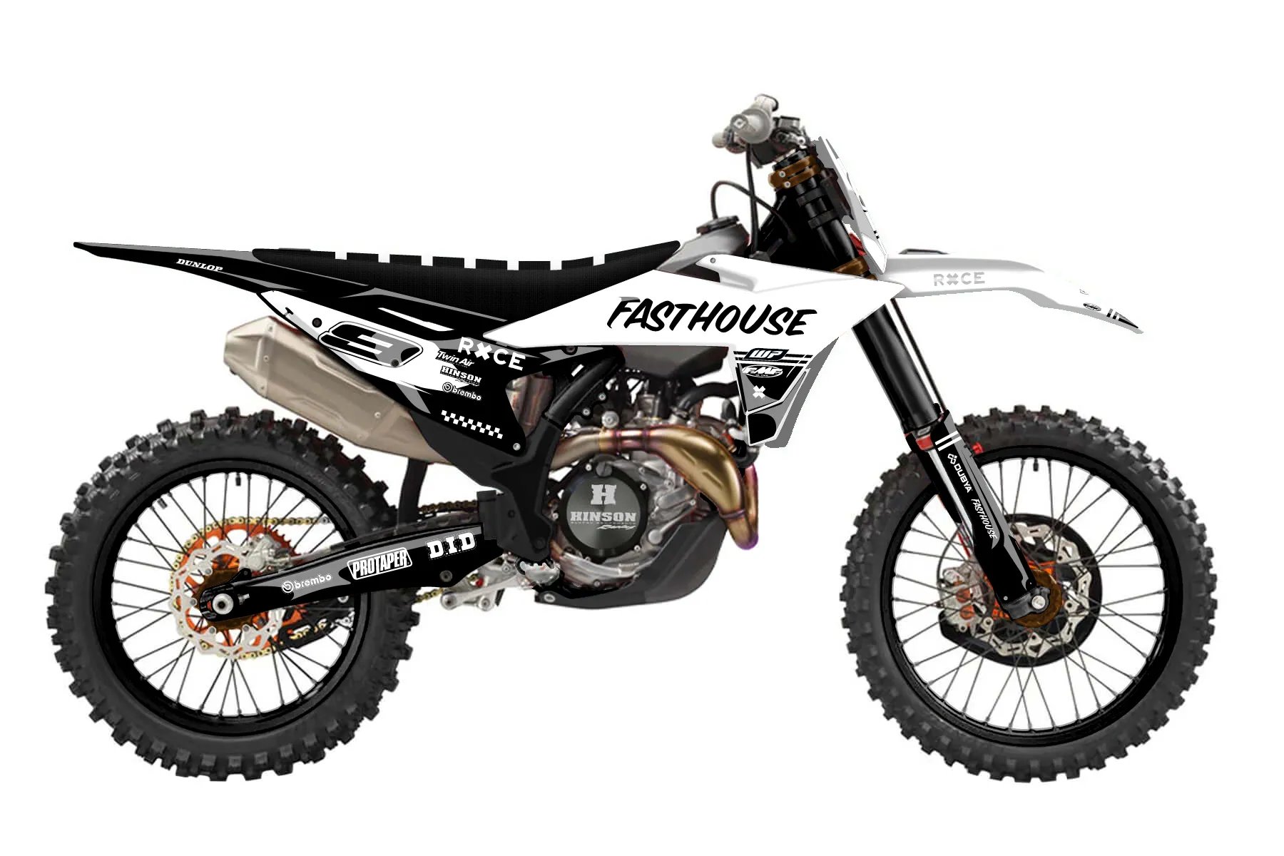 «Clear» — готовый комплект графики серии Untucked для KTM MX Graphic Kit KTM SX 300 2026. В комплекте: графика на бак и боковые облицовки, крылья (переднее и заднее), передний щиток, номерные таблички, защита вилки. Материал: ПВХ-винил 80 мкр с холодной ламинацией 300 мкр, общая толщина 380 мкр; покрытие глянцевое или матовое на выбор. Устойчив к UV-излучению, воде, бензину и мойке высокого давления. Клей акриловый на сольвентной основе — постоянный, для гибких пластиков. На простых поверхностях монтируется без нагрева; для сложных изгибов рекомендуем фен. Этот пресет можно заказать как есть или взять за основу в конструкторе: поменять цвета, добавить стартовый номер и свой бренд. Производство — 3–5 рабочих дней, доставка по России СДЭКом или Почтой, по СНГ — курьерскими службами.