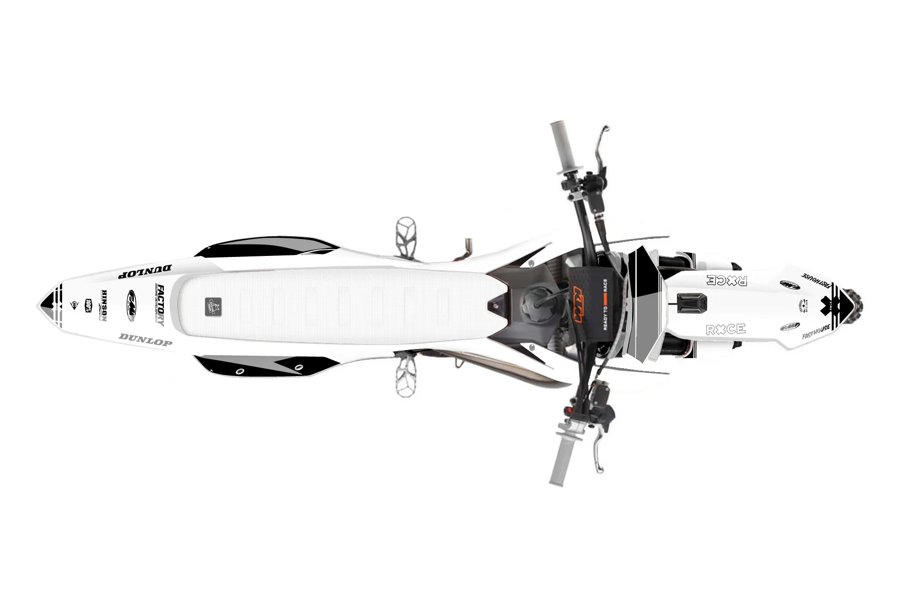 «DesignHouse» — готовый комплект графики серии Untucked для KTM MX Graphic Kit KTM SX 300 2026. В комплекте: графика на бак и боковые облицовки, крылья (переднее и заднее), передний щиток, номерные таблички, защита вилки. Материал: ПВХ-винил 80 мкр с холодной ламинацией 300 мкр, общая толщина 380 мкр; покрытие глянцевое или матовое на выбор. Устойчив к UV-излучению, воде, бензину и мойке высокого давления. Клей акриловый на сольвентной основе — постоянный, для гибких пластиков. На простых поверхностях монтируется без нагрева; для сложных изгибов рекомендуем фен. Этот пресет можно заказать как есть или взять за основу в конструкторе: поменять цвета, добавить стартовый номер и свой бренд. Производство — 3–5 рабочих дней, доставка по России СДЭКом или Почтой, по СНГ — курьерскими службами.