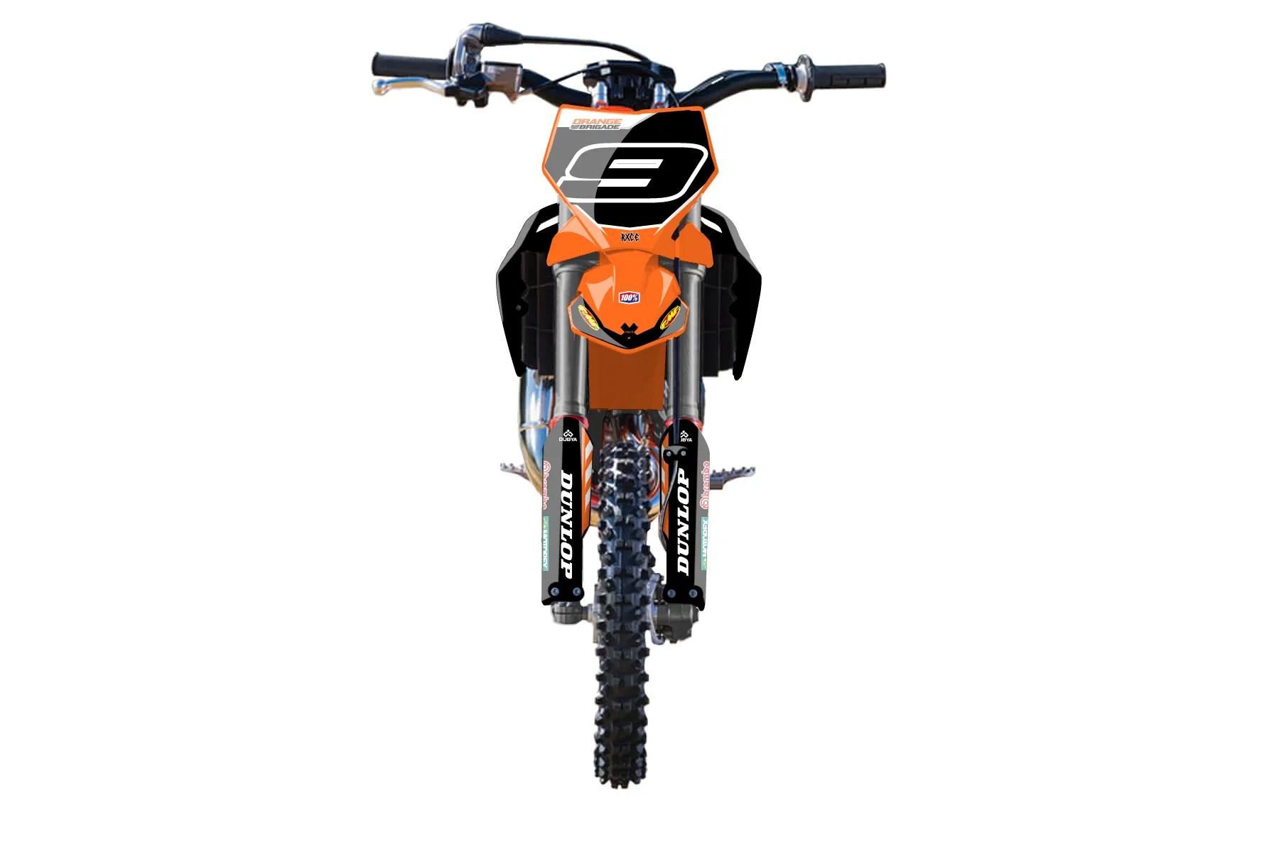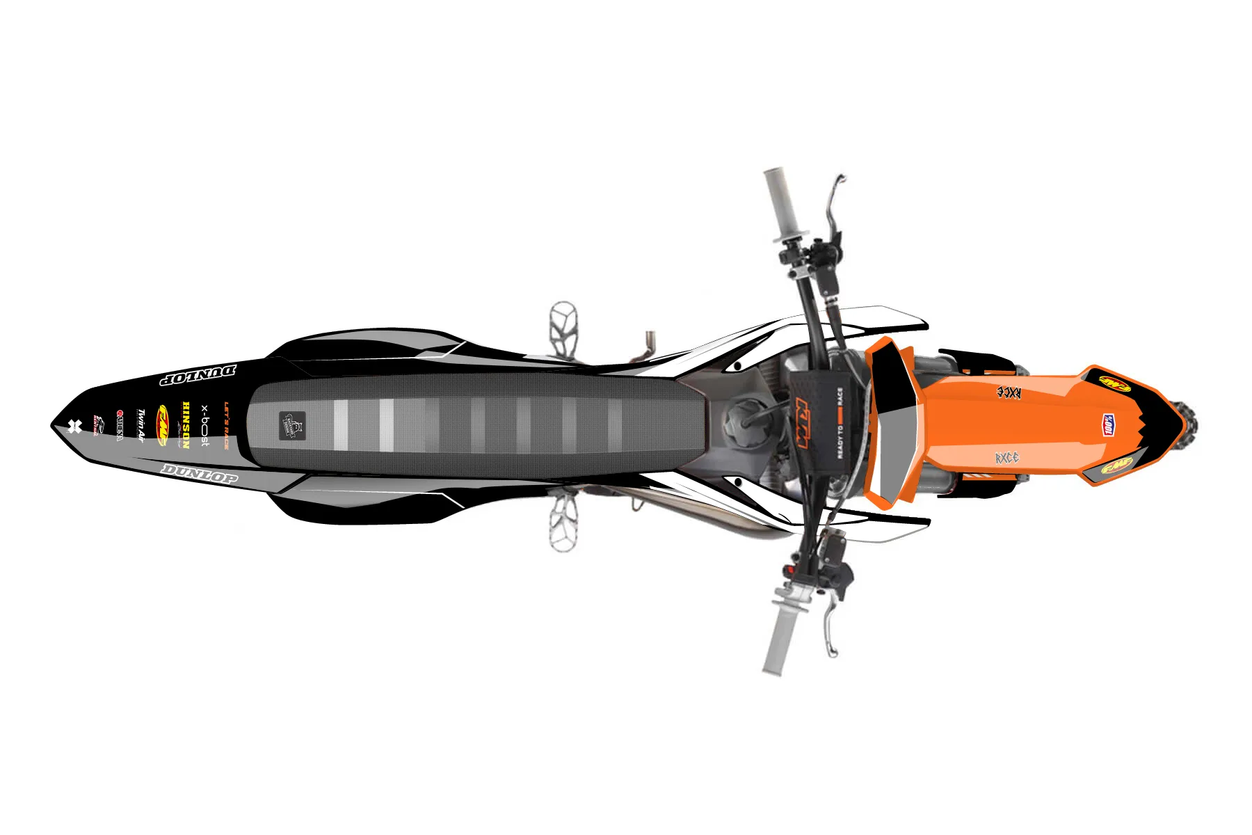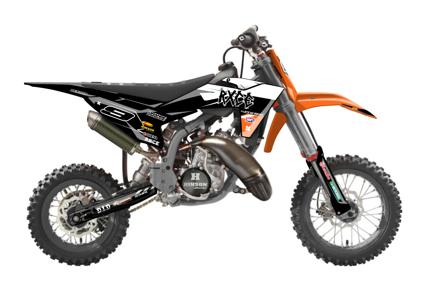 «Eleven» — готовый комплект графики серии Maverick для KTM MX Graphic Kit KTM SX 50 2002. В комплекте: графика на бак и боковые облицовки, крылья (переднее и заднее), передний щиток, номерные таблички, защита вилки. Материал: ПВХ-винил 80 мкр с холодной ламинацией 300 мкр, общая толщина 380 мкр; покрытие глянцевое или матовое на выбор. Устойчив к UV-излучению, воде, бензину и мойке высокого давления. Клей акриловый на сольвентной основе — постоянный, для гибких пластиков. На простых поверхностях монтируется без нагрева; для сложных изгибов рекомендуем фен. Этот пресет можно заказать как есть или взять за основу в конструкторе: поменять цвета, добавить стартовый номер и свой бренд. Производство — 3–5 рабочих дней, доставка по России СДЭКом или Почтой, по СНГ — курьерскими службами.