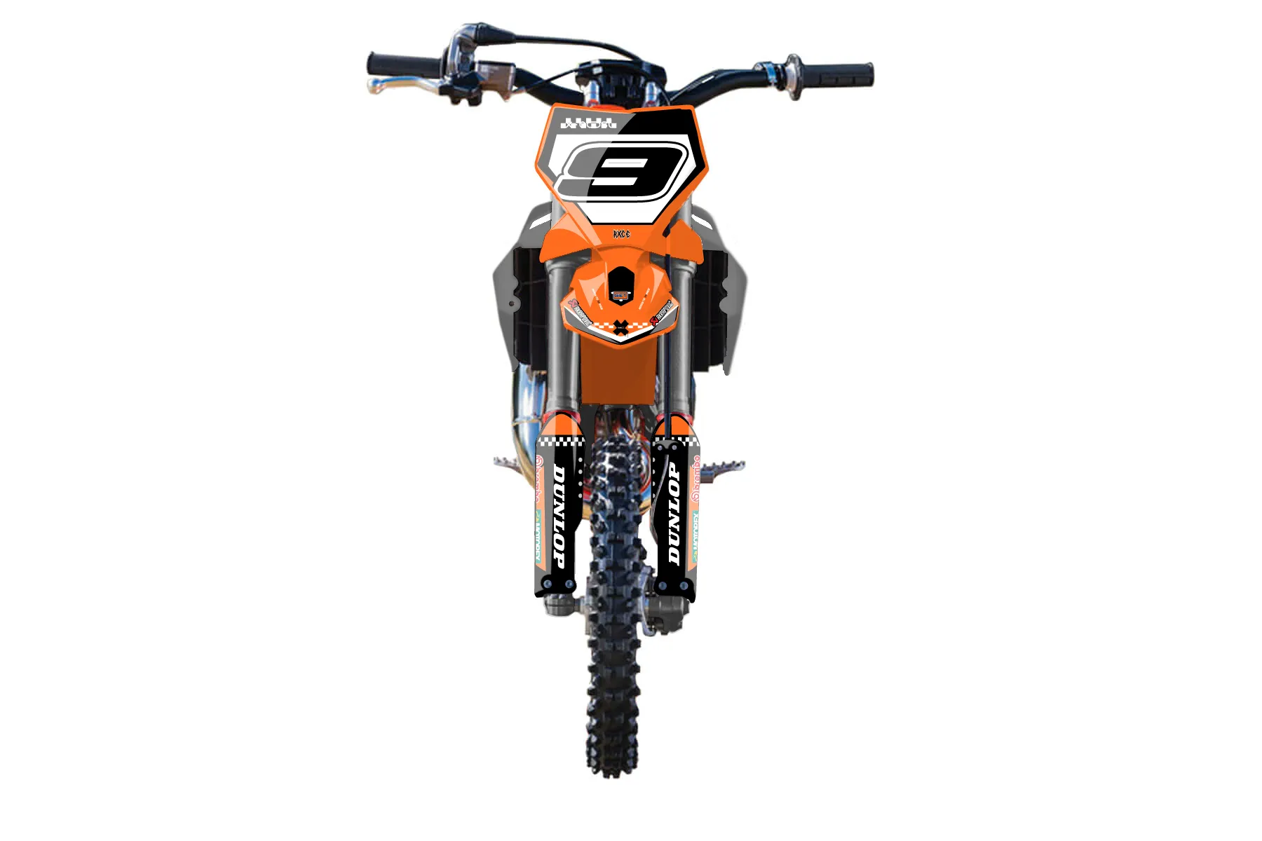 «Volt» — готовый комплект графики серии Staple для KTM MX Graphic Kit KTM SX 50 2002. В комплекте: графика на бак и боковые облицовки, крылья (переднее и заднее), передний щиток, номерные таблички, защита вилки. Материал: ПВХ-винил 80 мкр с холодной ламинацией 300 мкр, общая толщина 380 мкр; покрытие глянцевое или матовое на выбор. Устойчив к UV-излучению, воде, бензину и мойке высокого давления. Клей акриловый на сольвентной основе — постоянный, для гибких пластиков. На простых поверхностях монтируется без нагрева; для сложных изгибов рекомендуем фен. Этот пресет можно заказать как есть или взять за основу в конструкторе: поменять цвета, добавить стартовый номер и свой бренд. Производство — 3–5 рабочих дней, доставка по России СДЭКом или Почтой, по СНГ — курьерскими службами.