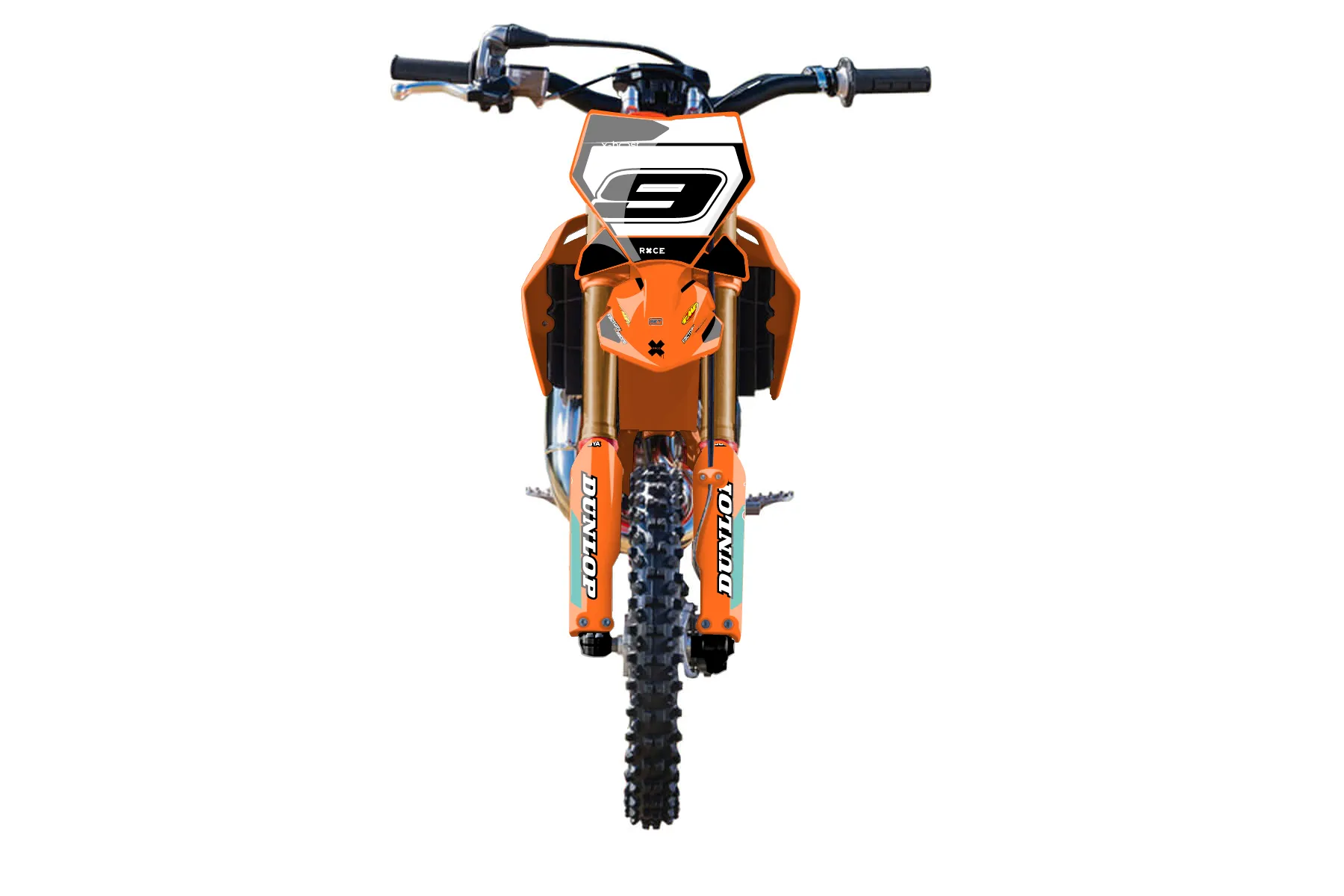 «Space» — готовый комплект графики серии Flow для KTM MX Graphic Kit KTM SX 50 2009. В комплекте: графика на бак и боковые облицовки, крылья (переднее и заднее), передний щиток, номерные таблички, защита вилки. Материал: ПВХ-винил 80 мкр с холодной ламинацией 300 мкр, общая толщина 380 мкр; покрытие глянцевое или матовое на выбор. Устойчив к UV-излучению, воде, бензину и мойке высокого давления. Клей акриловый на сольвентной основе — постоянный, для гибких пластиков. На простых поверхностях монтируется без нагрева; для сложных изгибов рекомендуем фен. Этот пресет можно заказать как есть или взять за основу в конструкторе: поменять цвета, добавить стартовый номер и свой бренд. Производство — 3–5 рабочих дней, доставка по России СДЭКом или Почтой, по СНГ — курьерскими службами.