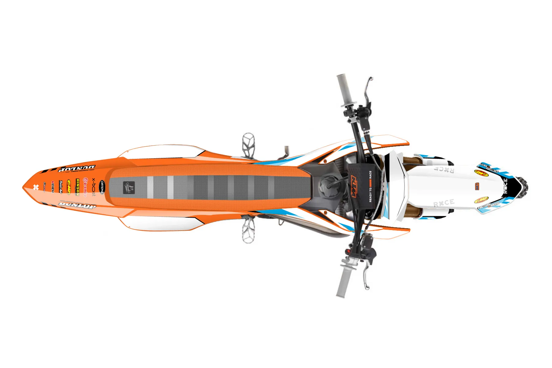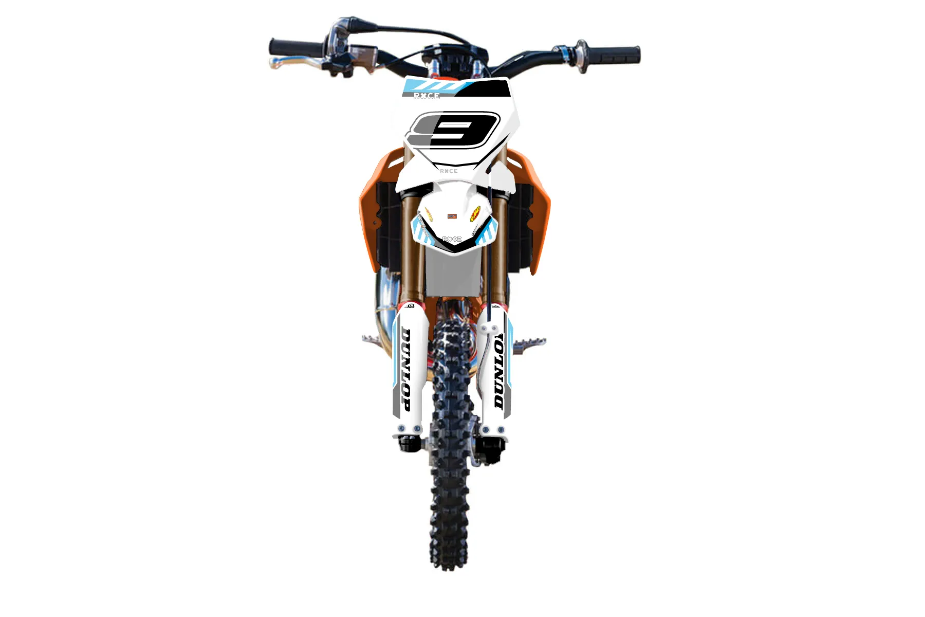 «Beyond» — готовый комплект графики серии Maverick для KTM MX Graphic Kit KTM SX 50 2009. В комплекте: графика на бак и боковые облицовки, крылья (переднее и заднее), передний щиток, номерные таблички, защита вилки. Материал: ПВХ-винил 80 мкр с холодной ламинацией 300 мкр, общая толщина 380 мкр; покрытие глянцевое или матовое на выбор. Устойчив к UV-излучению, воде, бензину и мойке высокого давления. Клей акриловый на сольвентной основе — постоянный, для гибких пластиков. На простых поверхностях монтируется без нагрева; для сложных изгибов рекомендуем фен. Этот пресет можно заказать как есть или взять за основу в конструкторе: поменять цвета, добавить стартовый номер и свой бренд. Производство — 3–5 рабочих дней, доставка по России СДЭКом или Почтой, по СНГ — курьерскими службами.