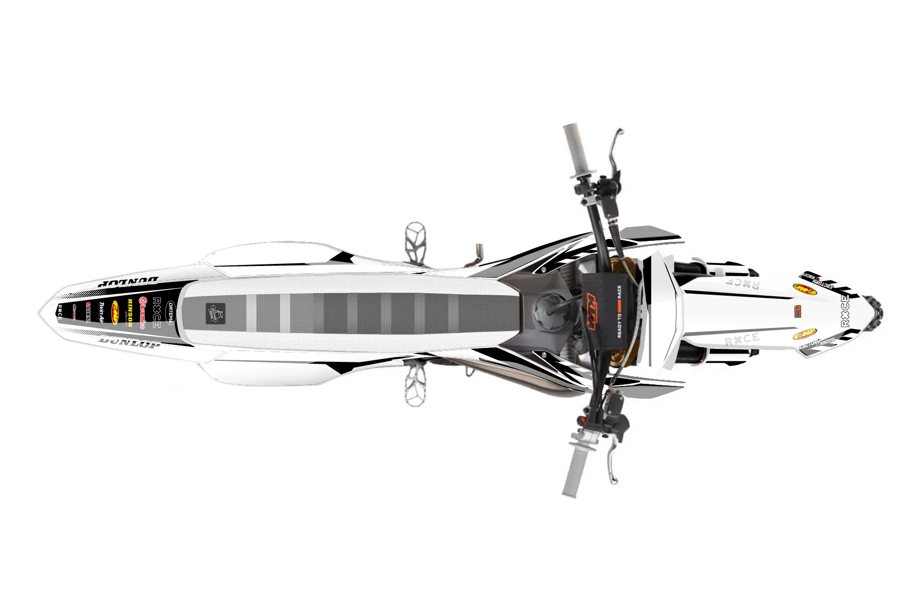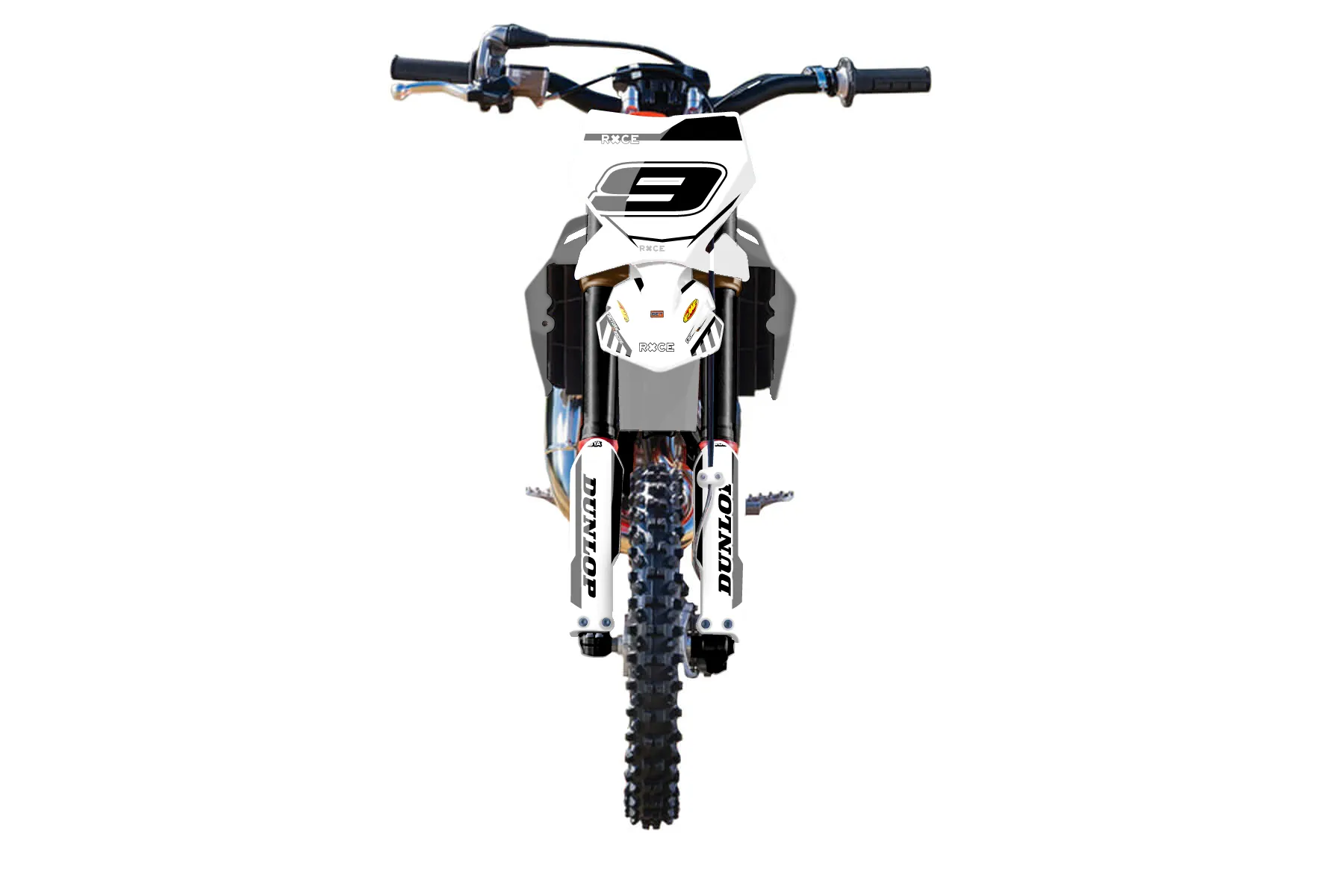 «Signature» — готовый комплект графики серии Maverick для KTM MX Graphic Kit KTM SX 50 2009. В комплекте: графика на бак и боковые облицовки, крылья (переднее и заднее), передний щиток, номерные таблички, защита вилки. Материал: ПВХ-винил 80 мкр с холодной ламинацией 300 мкр, общая толщина 380 мкр; покрытие глянцевое или матовое на выбор. Устойчив к UV-излучению, воде, бензину и мойке высокого давления. Клей акриловый на сольвентной основе — постоянный, для гибких пластиков. На простых поверхностях монтируется без нагрева; для сложных изгибов рекомендуем фен. Этот пресет можно заказать как есть или взять за основу в конструкторе: поменять цвета, добавить стартовый номер и свой бренд. Производство — 3–5 рабочих дней, доставка по России СДЭКом или Почтой, по СНГ — курьерскими службами.