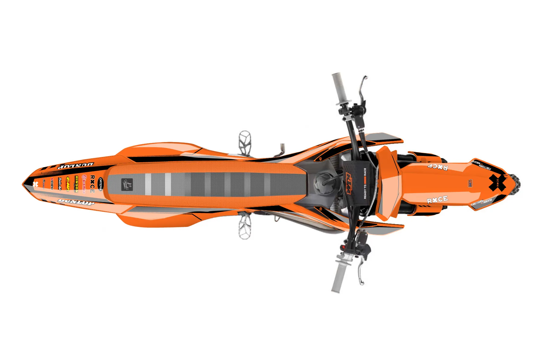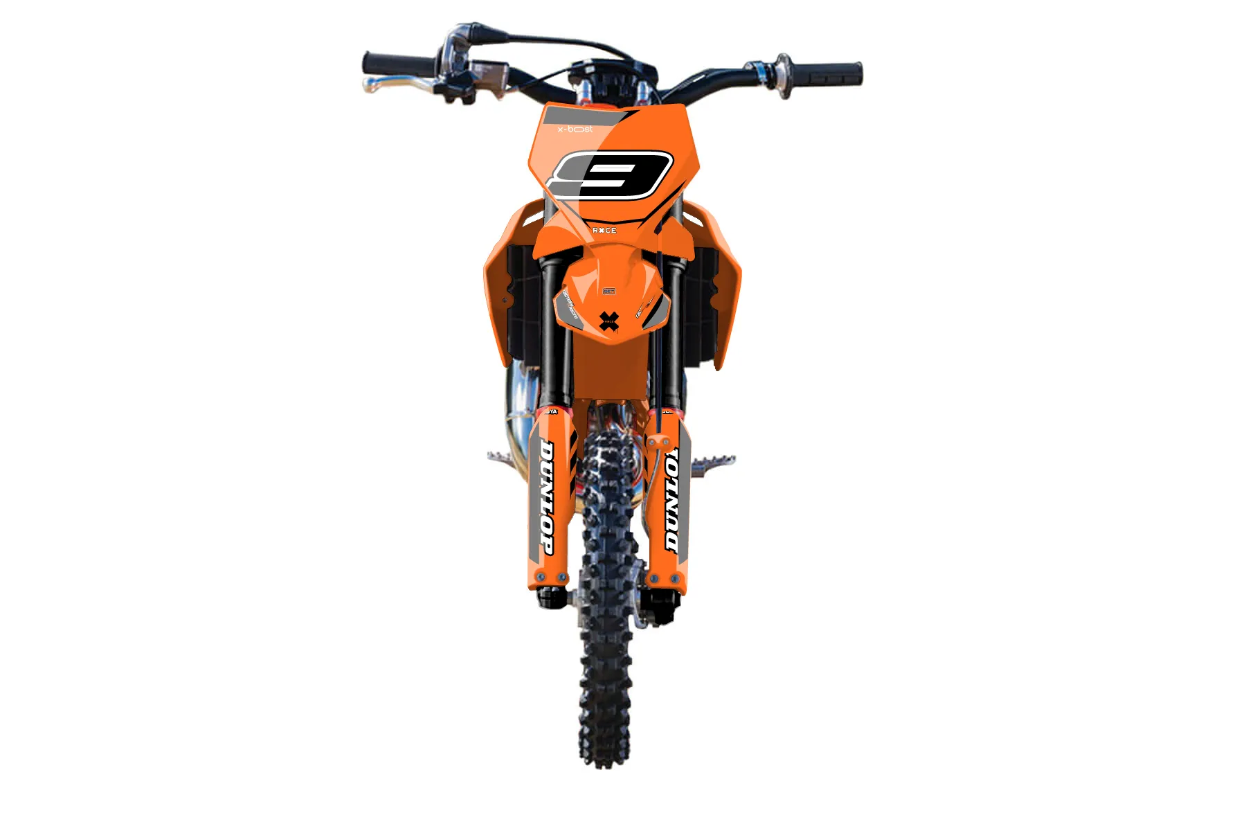 «Visonary» — готовый комплект графики серии Maverick для KTM MX Graphic Kit KTM SX 50 2009. В комплекте: графика на бак и боковые облицовки, крылья (переднее и заднее), передний щиток, номерные таблички, защита вилки. Материал: ПВХ-винил 80 мкр с холодной ламинацией 300 мкр, общая толщина 380 мкр; покрытие глянцевое или матовое на выбор. Устойчив к UV-излучению, воде, бензину и мойке высокого давления. Клей акриловый на сольвентной основе — постоянный, для гибких пластиков. На простых поверхностях монтируется без нагрева; для сложных изгибов рекомендуем фен. Этот пресет можно заказать как есть или взять за основу в конструкторе: поменять цвета, добавить стартовый номер и свой бренд. Производство — 3–5 рабочих дней, доставка по России СДЭКом или Почтой, по СНГ — курьерскими службами.