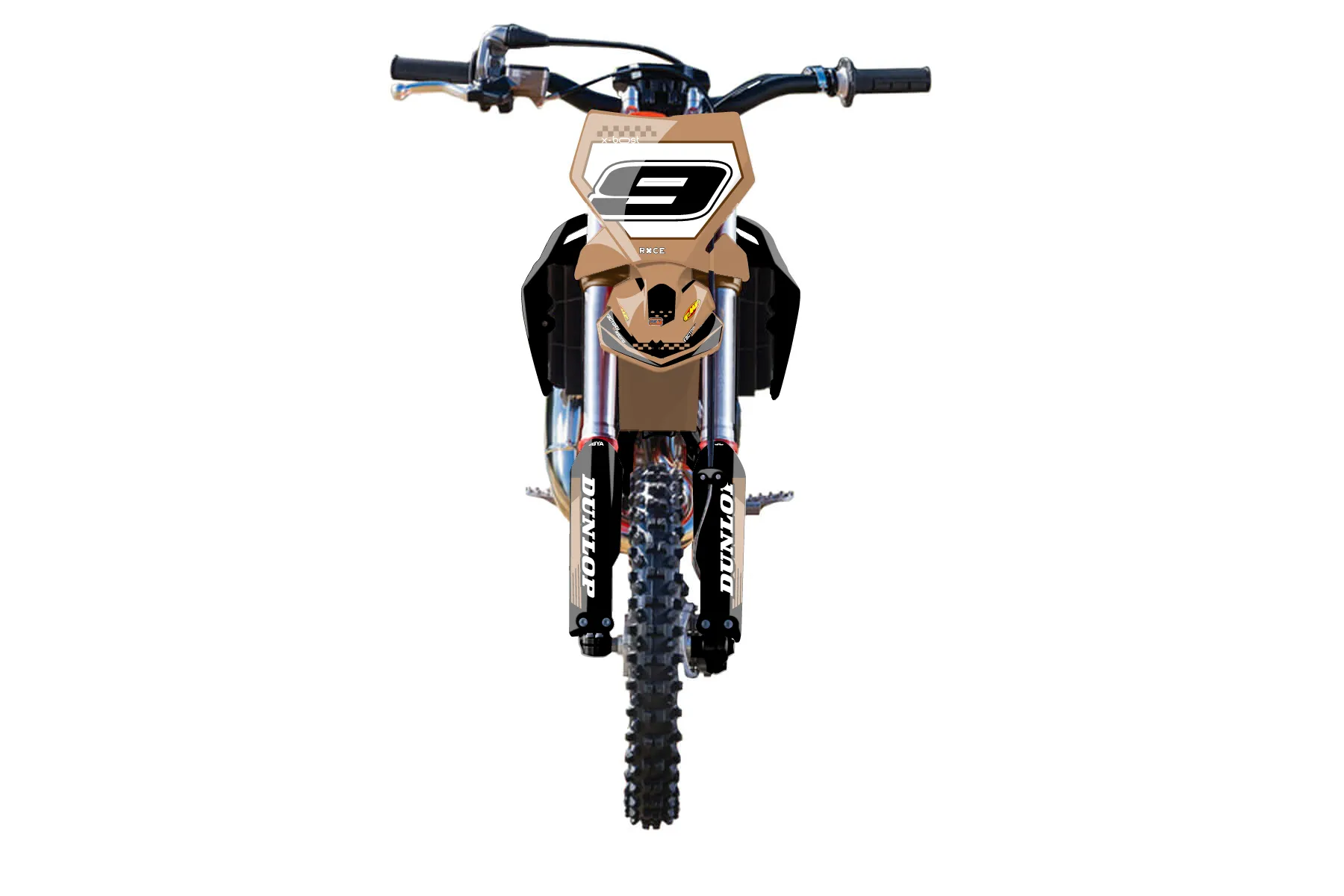 «Bang» — готовый комплект графики серии Staple для KTM MX Graphic Kit KTM SX 50 2009. В комплекте: графика на бак и боковые облицовки, крылья (переднее и заднее), передний щиток, номерные таблички, защита вилки. Материал: ПВХ-винил 80 мкр с холодной ламинацией 300 мкр, общая толщина 380 мкр; покрытие глянцевое или матовое на выбор. Устойчив к UV-излучению, воде, бензину и мойке высокого давления. Клей акриловый на сольвентной основе — постоянный, для гибких пластиков. На простых поверхностях монтируется без нагрева; для сложных изгибов рекомендуем фен. Этот пресет можно заказать как есть или взять за основу в конструкторе: поменять цвета, добавить стартовый номер и свой бренд. Производство — 3–5 рабочих дней, доставка по России СДЭКом или Почтой, по СНГ — курьерскими службами.