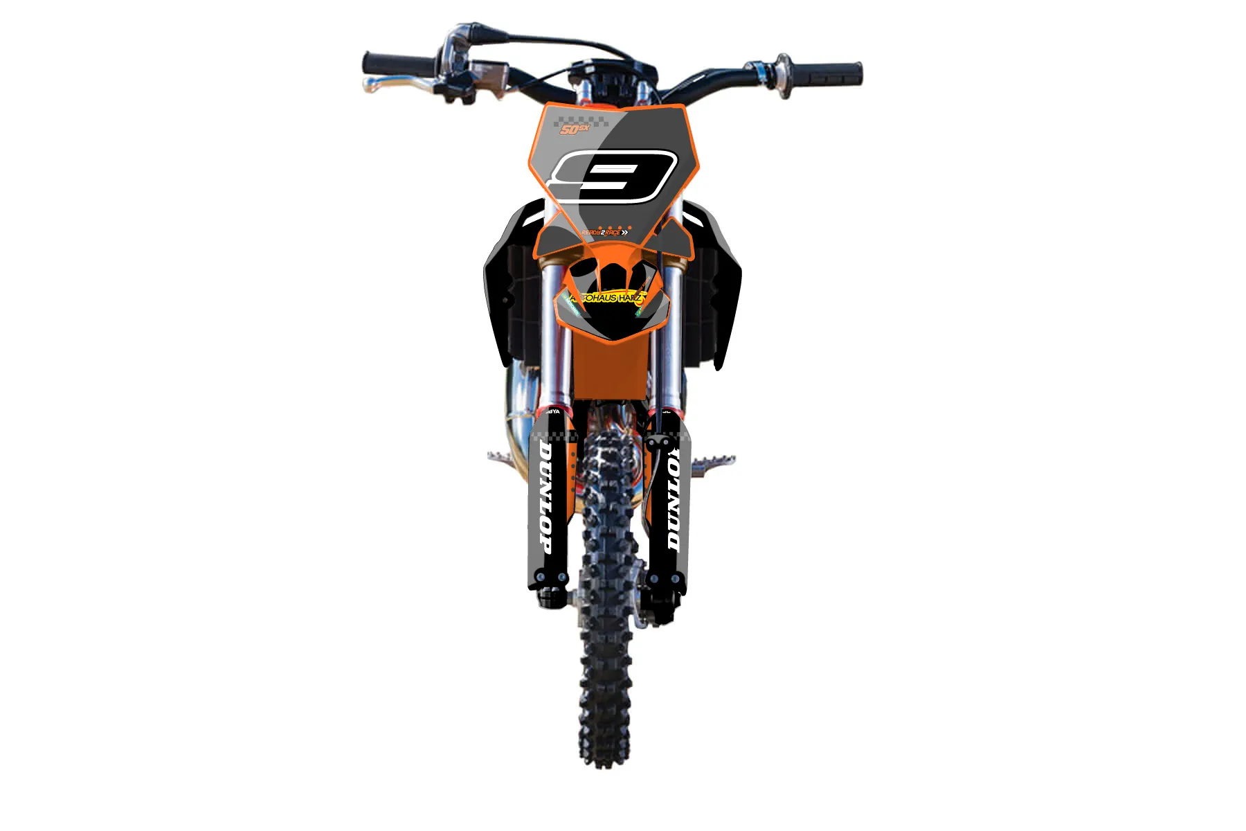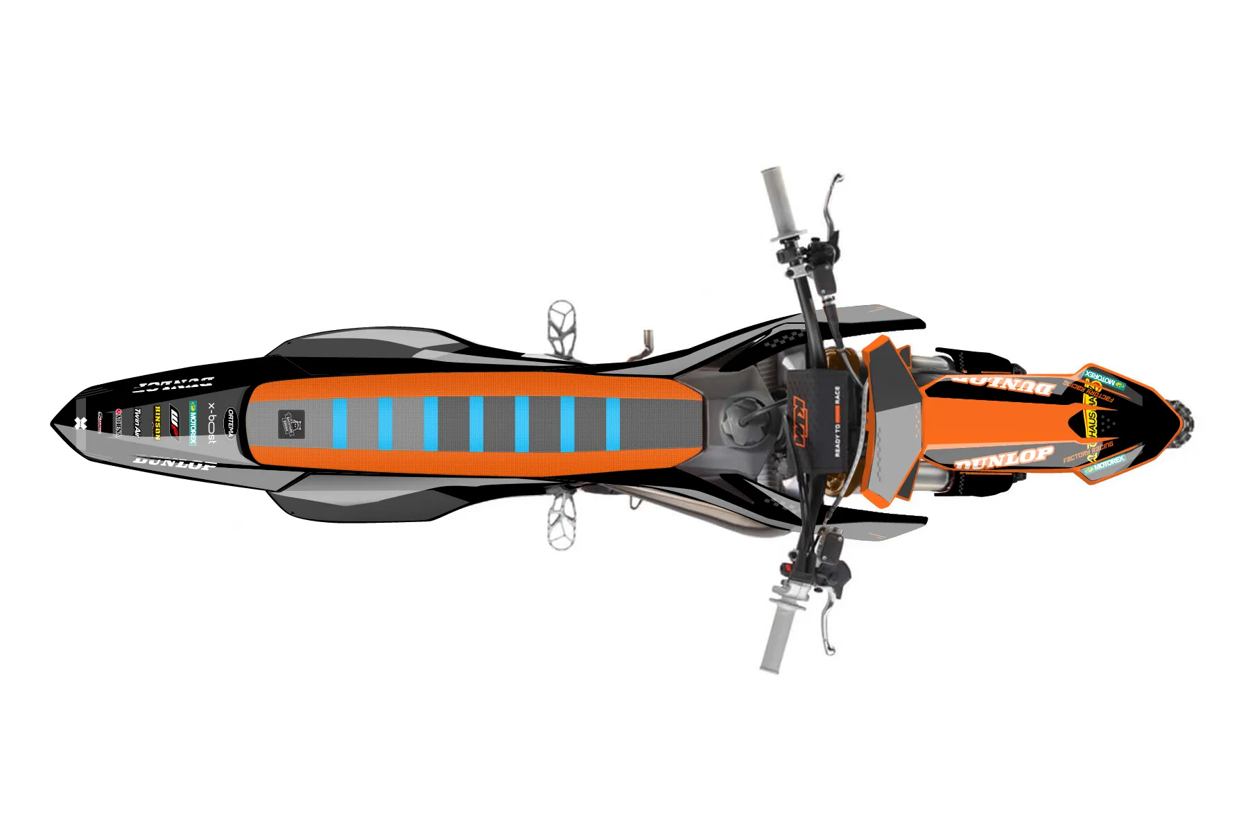 «Bull» — готовый комплект графики серии Staple для KTM MX Graphic Kit KTM SX 50 2009. В комплекте: графика на бак и боковые облицовки, крылья (переднее и заднее), передний щиток, номерные таблички, защита вилки. Материал: ПВХ-винил 80 мкр с холодной ламинацией 300 мкр, общая толщина 380 мкр; покрытие глянцевое или матовое на выбор. Устойчив к UV-излучению, воде, бензину и мойке высокого давления. Клей акриловый на сольвентной основе — постоянный, для гибких пластиков. На простых поверхностях монтируется без нагрева; для сложных изгибов рекомендуем фен. Этот пресет можно заказать как есть или взять за основу в конструкторе: поменять цвета, добавить стартовый номер и свой бренд. Производство — 3–5 рабочих дней, доставка по России СДЭКом или Почтой, по СНГ — курьерскими службами.