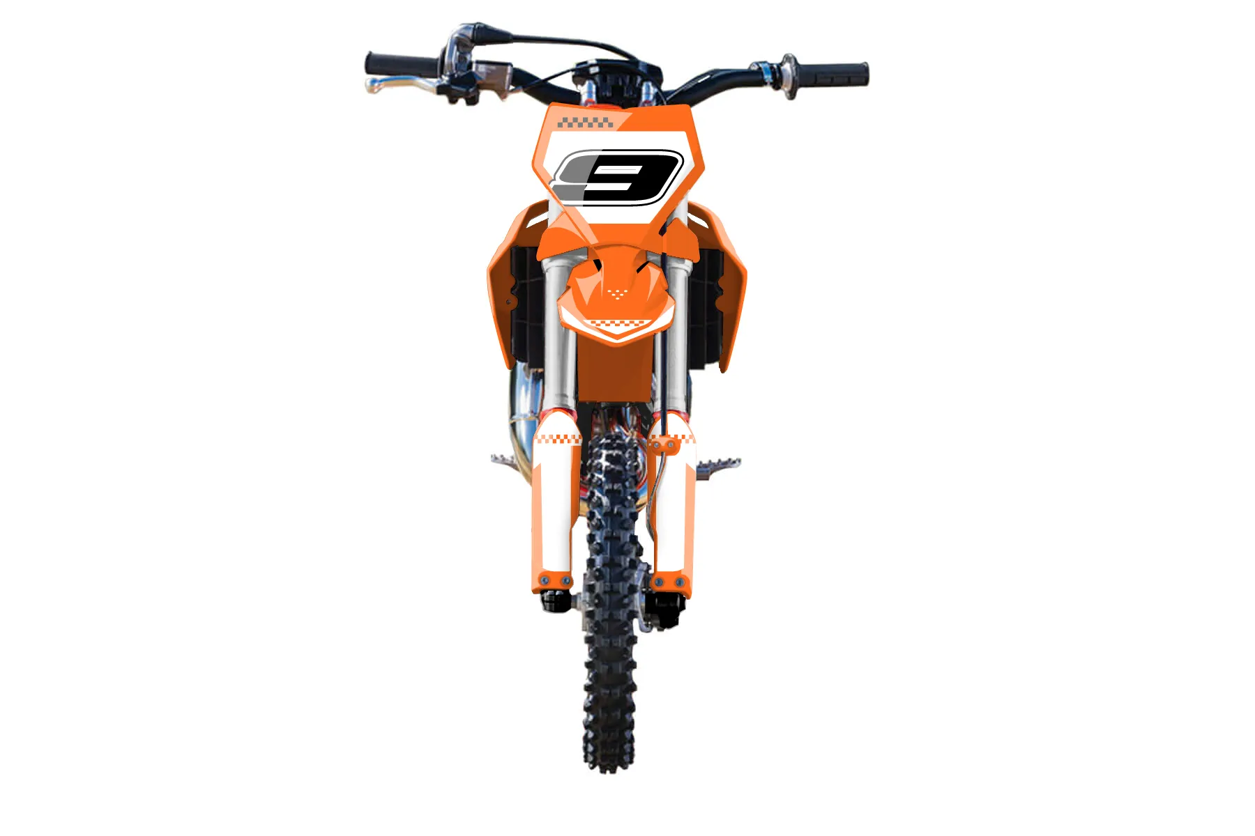 «easton» — готовый комплект графики серии Staple для KTM MX Graphic Kit KTM SX 50 2009. В комплекте: графика на бак и боковые облицовки, крылья (переднее и заднее), передний щиток, номерные таблички, защита вилки. Материал: ПВХ-винил 80 мкр с холодной ламинацией 300 мкр, общая толщина 380 мкр; покрытие глянцевое или матовое на выбор. Устойчив к UV-излучению, воде, бензину и мойке высокого давления. Клей акриловый на сольвентной основе — постоянный, для гибких пластиков. На простых поверхностях монтируется без нагрева; для сложных изгибов рекомендуем фен. Этот пресет можно заказать как есть или взять за основу в конструкторе: поменять цвета, добавить стартовый номер и свой бренд. Производство — 3–5 рабочих дней, доставка по России СДЭКом или Почтой, по СНГ — курьерскими службами.