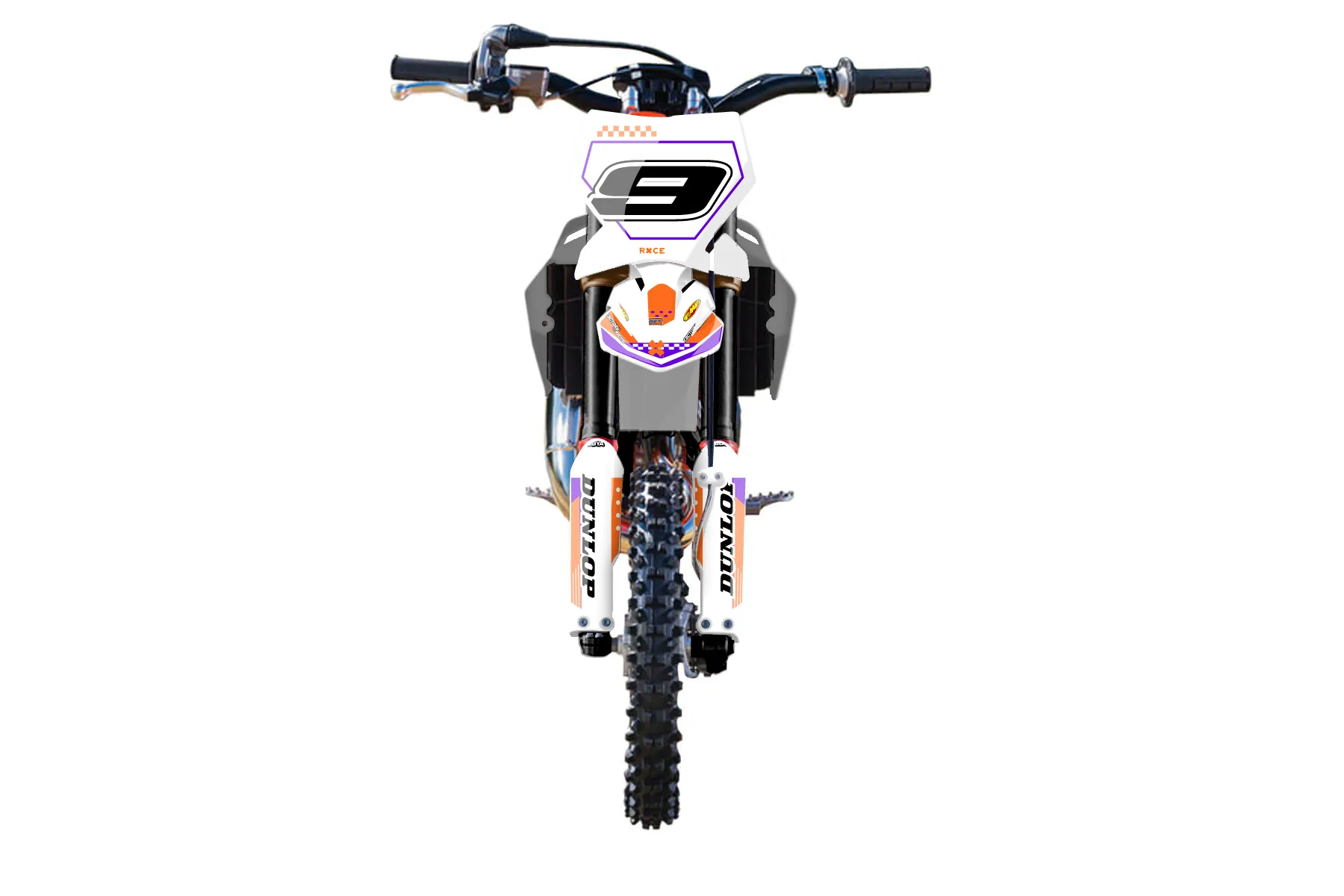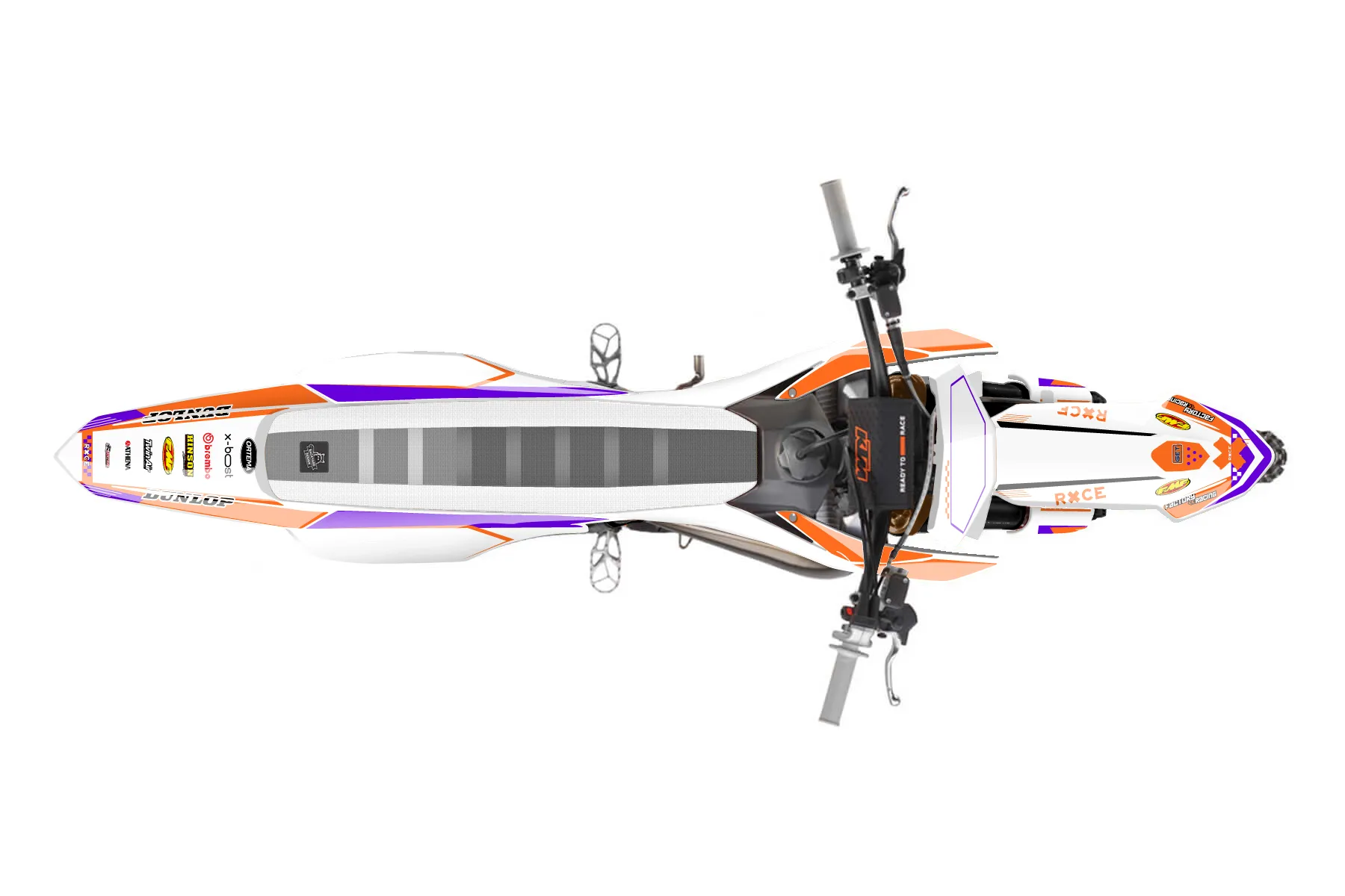 «Retro» — готовый комплект графики серии Staple для KTM MX Graphic Kit KTM SX 50 2009. В комплекте: графика на бак и боковые облицовки, крылья (переднее и заднее), передний щиток, номерные таблички, защита вилки. Материал: ПВХ-винил 80 мкр с холодной ламинацией 300 мкр, общая толщина 380 мкр; покрытие глянцевое или матовое на выбор. Устойчив к UV-излучению, воде, бензину и мойке высокого давления. Клей акриловый на сольвентной основе — постоянный, для гибких пластиков. На простых поверхностях монтируется без нагрева; для сложных изгибов рекомендуем фен. Этот пресет можно заказать как есть или взять за основу в конструкторе: поменять цвета, добавить стартовый номер и свой бренд. Производство — 3–5 рабочих дней, доставка по России СДЭКом или Почтой, по СНГ — курьерскими службами.