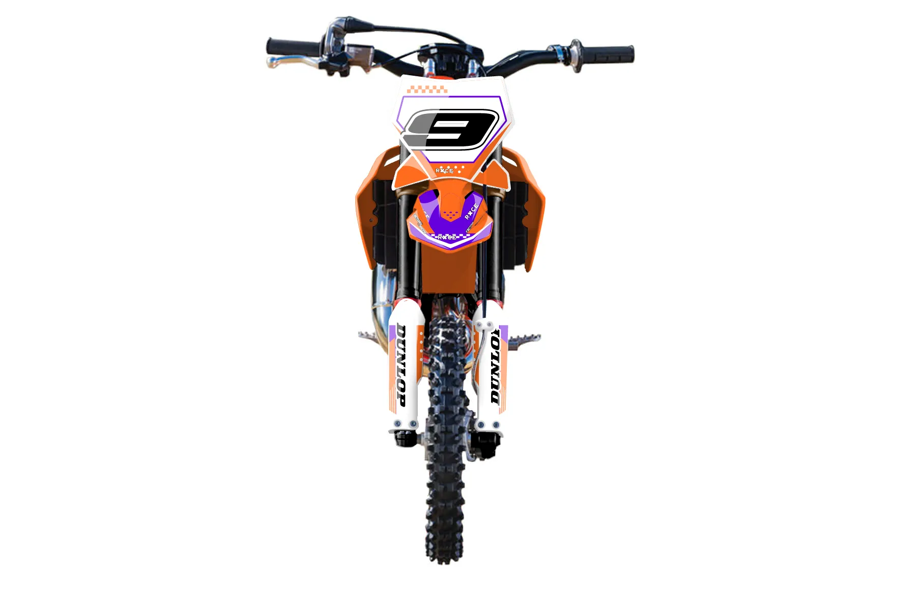 «silas 2015» — готовый комплект графики серии Staple для KTM MX Graphic Kit KTM SX 50 2009. В комплекте: графика на бак и боковые облицовки, крылья (переднее и заднее), передний щиток, номерные таблички, защита вилки. Материал: ПВХ-винил 80 мкр с холодной ламинацией 300 мкр, общая толщина 380 мкр; покрытие глянцевое или матовое на выбор. Устойчив к UV-излучению, воде, бензину и мойке высокого давления. Клей акриловый на сольвентной основе — постоянный, для гибких пластиков. На простых поверхностях монтируется без нагрева; для сложных изгибов рекомендуем фен. Этот пресет можно заказать как есть или взять за основу в конструкторе: поменять цвета, добавить стартовый номер и свой бренд. Производство — 3–5 рабочих дней, доставка по России СДЭКом или Почтой, по СНГ — курьерскими службами.