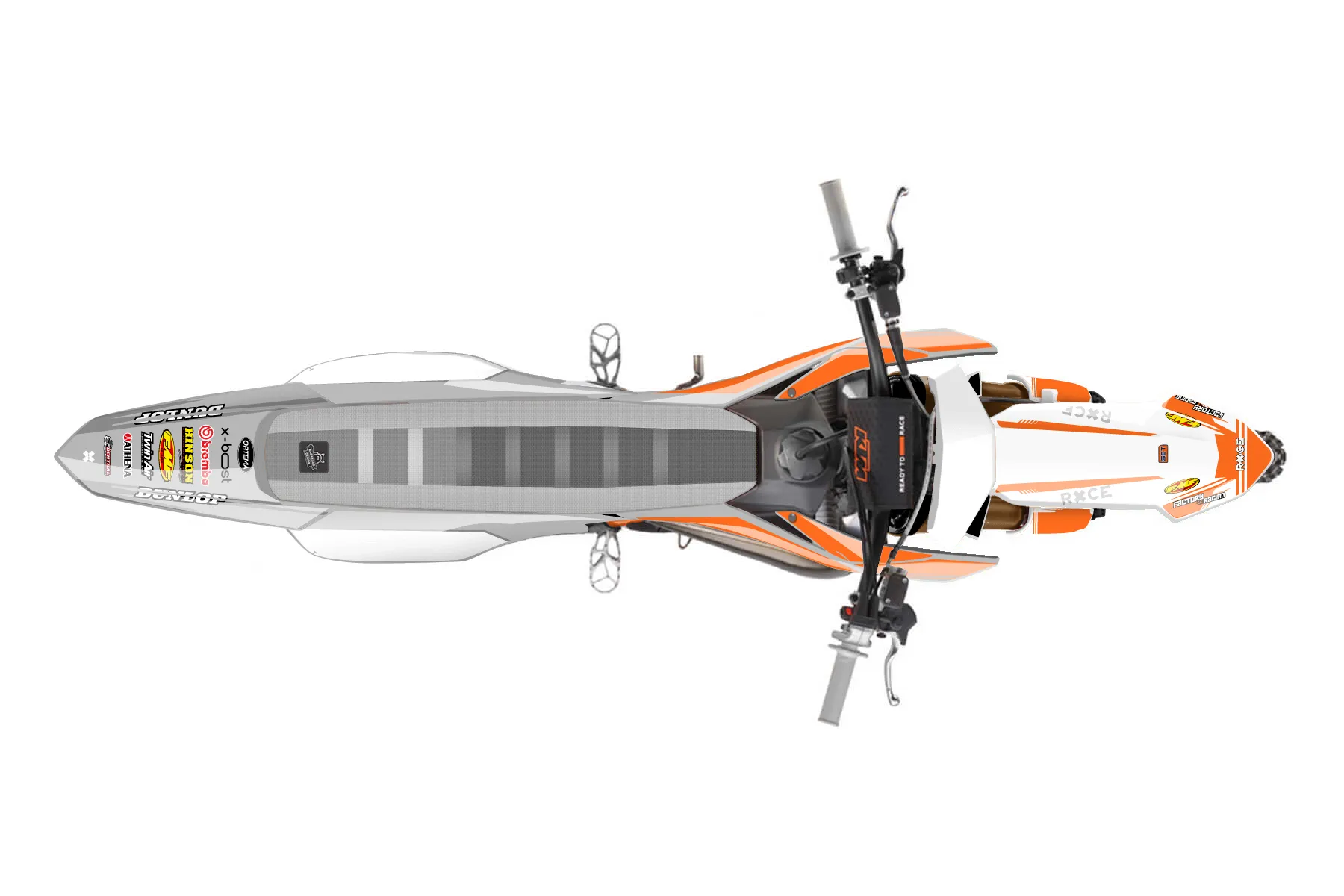 «Answer» — готовый комплект графики серии Untucked для KTM MX Graphic Kit KTM SX 50 2009. В комплекте: графика на бак и боковые облицовки, крылья (переднее и заднее), передний щиток, номерные таблички, защита вилки. Материал: ПВХ-винил 80 мкр с холодной ламинацией 300 мкр, общая толщина 380 мкр; покрытие глянцевое или матовое на выбор. Устойчив к UV-излучению, воде, бензину и мойке высокого давления. Клей акриловый на сольвентной основе — постоянный, для гибких пластиков. На простых поверхностях монтируется без нагрева; для сложных изгибов рекомендуем фен. Этот пресет можно заказать как есть или взять за основу в конструкторе: поменять цвета, добавить стартовый номер и свой бренд. Производство — 3–5 рабочих дней, доставка по России СДЭКом или Почтой, по СНГ — курьерскими службами.