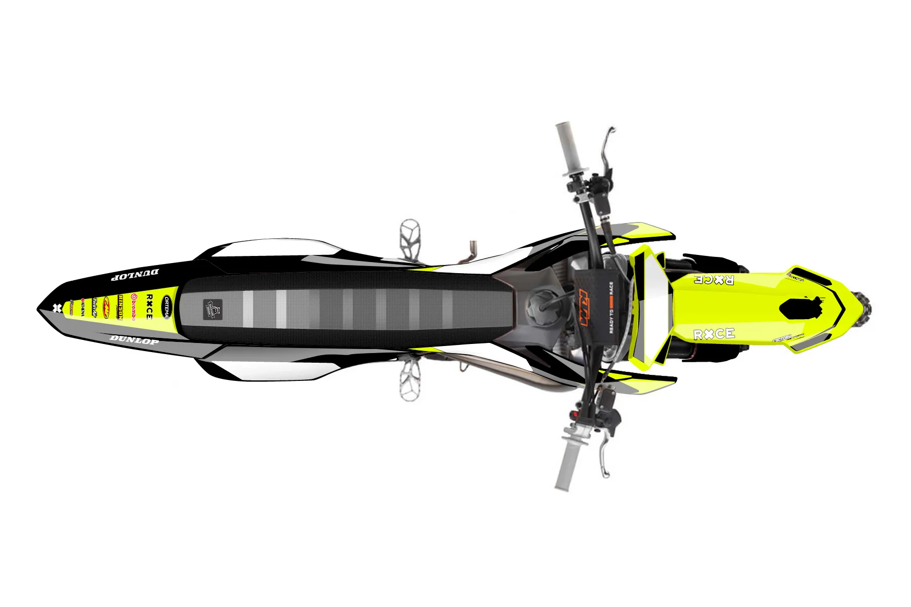 «Throwback» — готовый комплект графики серии Flow для KTM MX Graphic Kit KTM SX 50 2016. В комплекте: графика на бак и боковые облицовки, крылья (переднее и заднее), передний щиток, номерные таблички, защита вилки. Материал: ПВХ-винил 80 мкр с холодной ламинацией 300 мкр, общая толщина 380 мкр; покрытие глянцевое или матовое на выбор. Устойчив к UV-излучению, воде, бензину и мойке высокого давления. Клей акриловый на сольвентной основе — постоянный, для гибких пластиков. На простых поверхностях монтируется без нагрева; для сложных изгибов рекомендуем фен. Этот пресет можно заказать как есть или взять за основу в конструкторе: поменять цвета, добавить стартовый номер и свой бренд. Производство — 3–5 рабочих дней, доставка по России СДЭКом или Почтой, по СНГ — курьерскими службами.