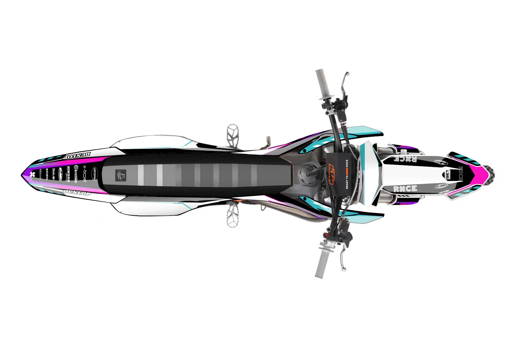 «CustomDesign» — готовый комплект графики серии Maverick для KTM MX Graphic Kit KTM SX 50 2016. В комплекте: графика на бак и боковые облицовки, крылья (переднее и заднее), передний щиток, номерные таблички, защита вилки. Материал: ПВХ-винил 80 мкр с холодной ламинацией 300 мкр, общая толщина 380 мкр; покрытие глянцевое или матовое на выбор. Устойчив к UV-излучению, воде, бензину и мойке высокого давления. Клей акриловый на сольвентной основе — постоянный, для гибких пластиков. На простых поверхностях монтируется без нагрева; для сложных изгибов рекомендуем фен. Этот пресет можно заказать как есть или взять за основу в конструкторе: поменять цвета, добавить стартовый номер и свой бренд. Производство — 3–5 рабочих дней, доставка по России СДЭКом или Почтой, по СНГ — курьерскими службами.