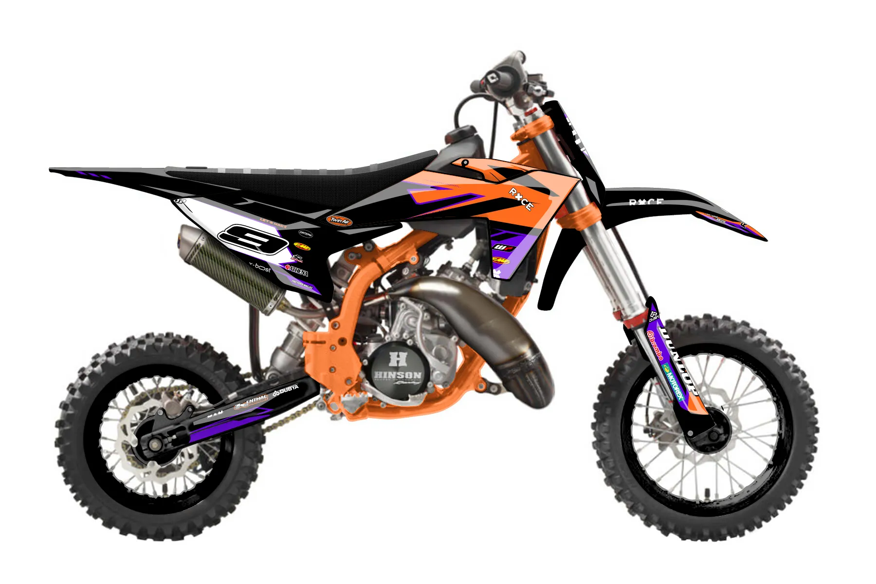 «Lillian 50» — готовый комплект графики серии Maverick для KTM MX Graphic Kit KTM SX 50 2016. В комплекте: графика на бак и боковые облицовки, крылья (переднее и заднее), передний щиток, номерные таблички, защита вилки. Материал: ПВХ-винил 80 мкр с холодной ламинацией 300 мкр, общая толщина 380 мкр; покрытие глянцевое или матовое на выбор. Устойчив к UV-излучению, воде, бензину и мойке высокого давления. Клей акриловый на сольвентной основе — постоянный, для гибких пластиков. На простых поверхностях монтируется без нагрева; для сложных изгибов рекомендуем фен. Этот пресет можно заказать как есть или взять за основу в конструкторе: поменять цвета, добавить стартовый номер и свой бренд. Производство — 3–5 рабочих дней, доставка по России СДЭКом или Почтой, по СНГ — курьерскими службами.