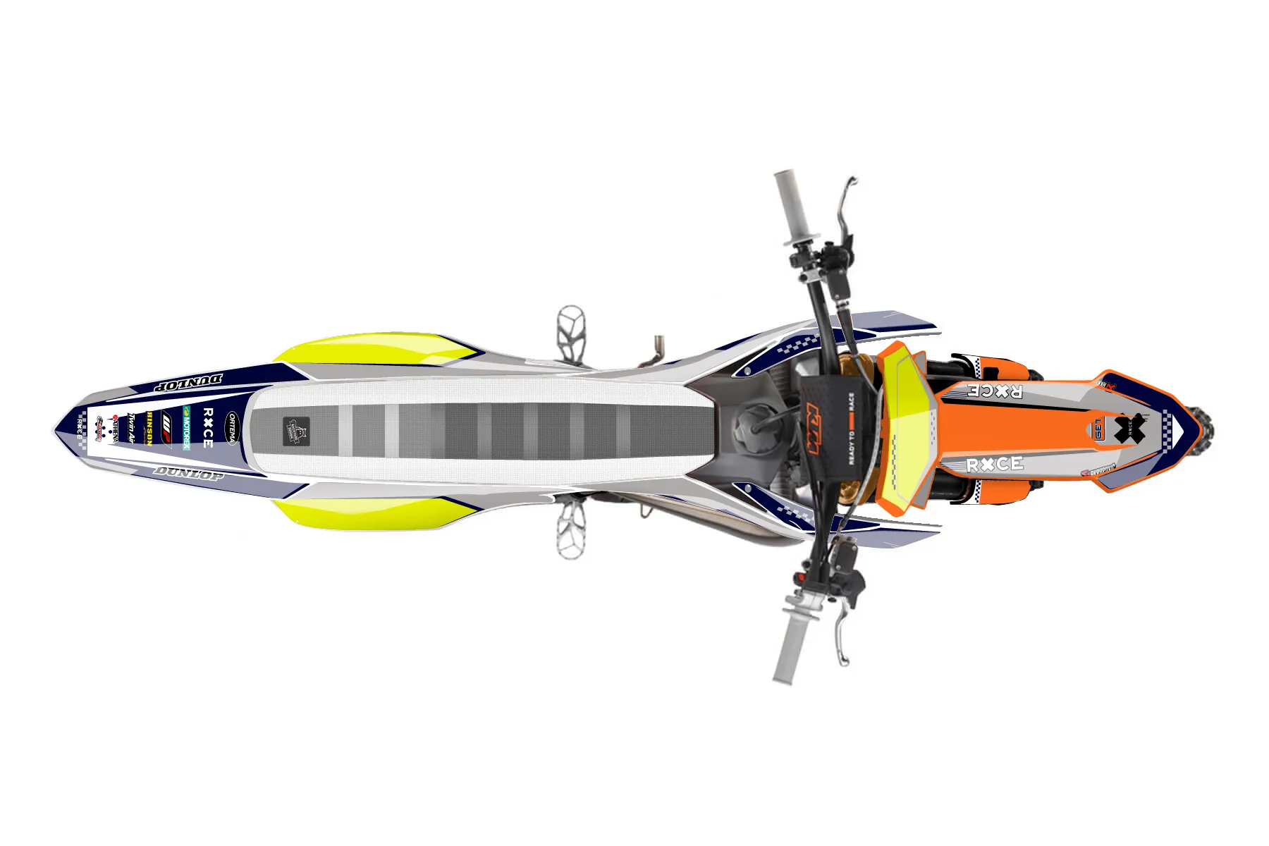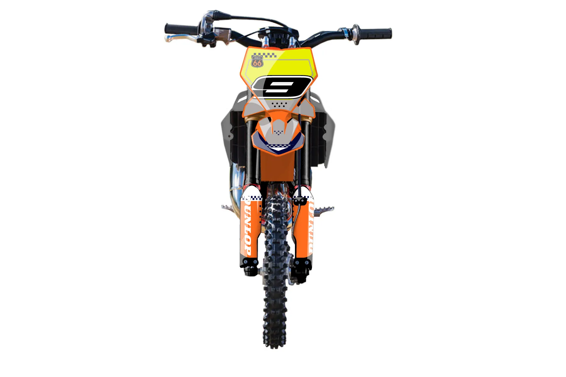 «Kaezden61j» — готовый комплект графики серии Staple для KTM MX Graphic Kit KTM SX 50 2016. В комплекте: графика на бак и боковые облицовки, крылья (переднее и заднее), передний щиток, номерные таблички, защита вилки. Материал: ПВХ-винил 80 мкр с холодной ламинацией 300 мкр, общая толщина 380 мкр; покрытие глянцевое или матовое на выбор. Устойчив к UV-излучению, воде, бензину и мойке высокого давления. Клей акриловый на сольвентной основе — постоянный, для гибких пластиков. На простых поверхностях монтируется без нагрева; для сложных изгибов рекомендуем фен. Этот пресет можно заказать как есть или взять за основу в конструкторе: поменять цвета, добавить стартовый номер и свой бренд. Производство — 3–5 рабочих дней, доставка по России СДЭКом или Почтой, по СНГ — курьерскими службами.