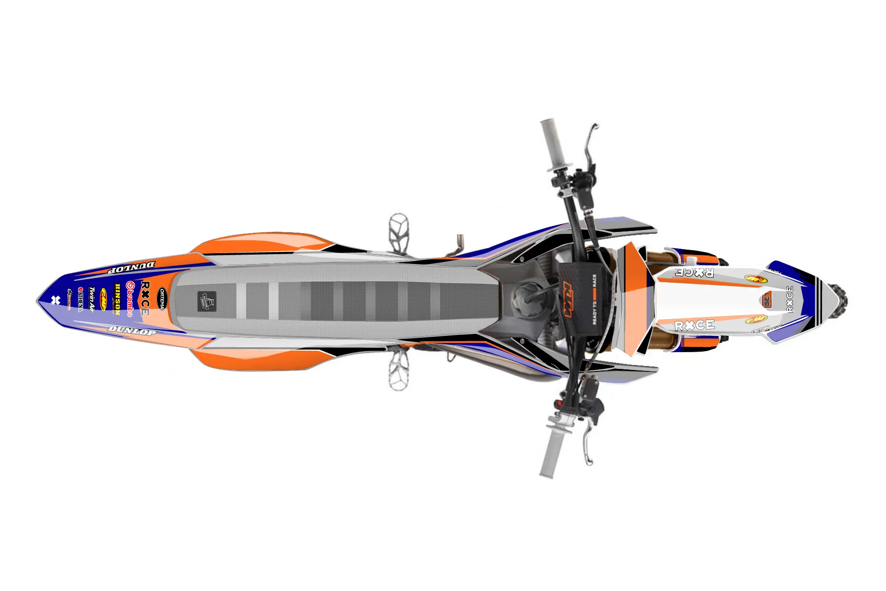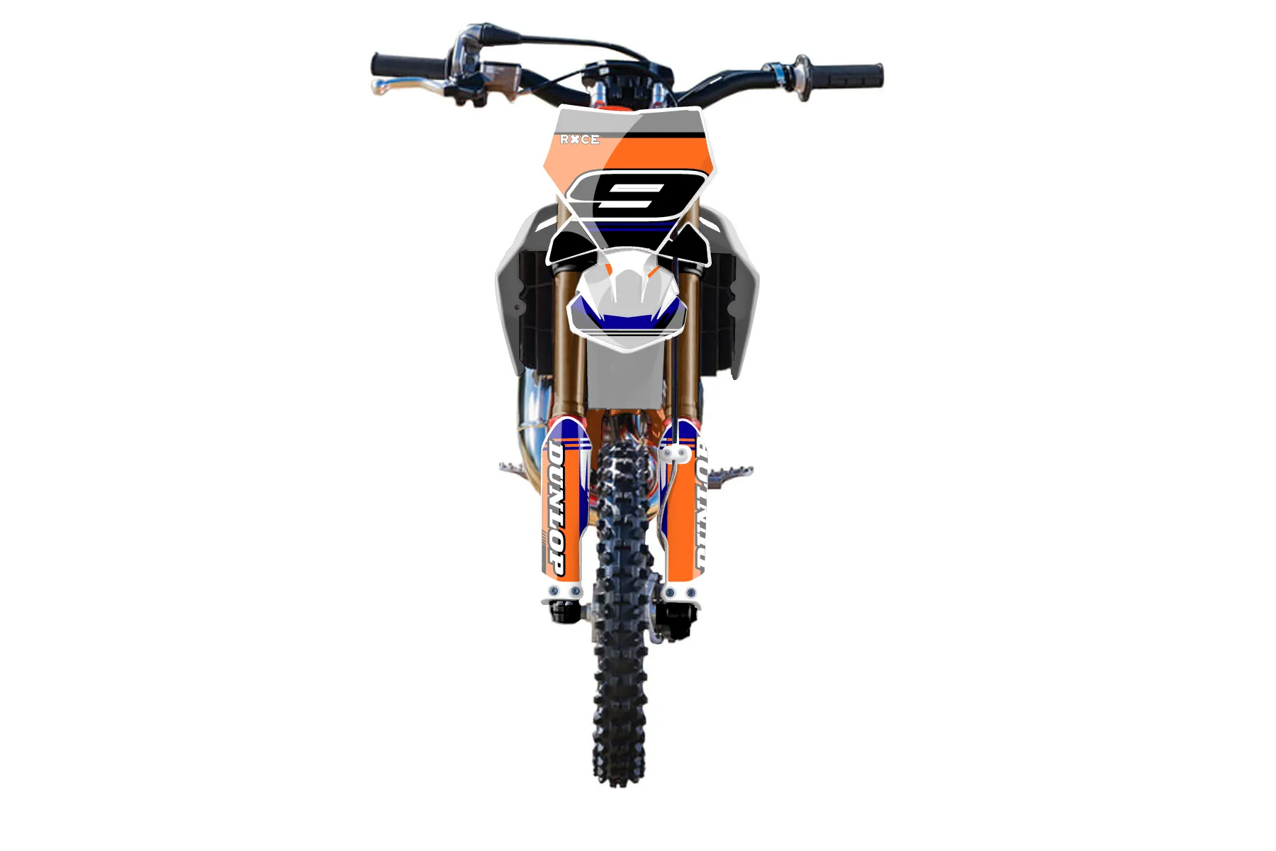 «Pierson» — готовый комплект графики серии Untucked для KTM MX Graphic Kit KTM SX 50 2016. В комплекте: графика на бак и боковые облицовки, крылья (переднее и заднее), передний щиток, номерные таблички, защита вилки. Материал: ПВХ-винил 80 мкр с холодной ламинацией 300 мкр, общая толщина 380 мкр; покрытие глянцевое или матовое на выбор. Устойчив к UV-излучению, воде, бензину и мойке высокого давления. Клей акриловый на сольвентной основе — постоянный, для гибких пластиков. На простых поверхностях монтируется без нагрева; для сложных изгибов рекомендуем фен. Этот пресет можно заказать как есть или взять за основу в конструкторе: поменять цвета, добавить стартовый номер и свой бренд. Производство — 3–5 рабочих дней, доставка по России СДЭКом или Почтой, по СНГ — курьерскими службами.