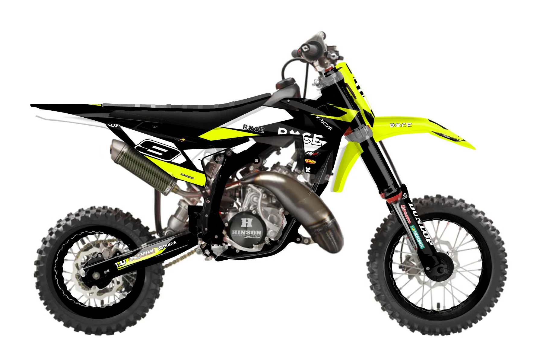 «Throwback» — готовый комплект графики серии Flow для KTM MX Graphic Kit KTM SX 50 2019. В комплекте: графика на бак и боковые облицовки, крылья (переднее и заднее), передний щиток, номерные таблички, защита вилки. Материал: ПВХ-винил 80 мкр с холодной ламинацией 300 мкр, общая толщина 380 мкр; покрытие глянцевое или матовое на выбор. Устойчив к UV-излучению, воде, бензину и мойке высокого давления. Клей акриловый на сольвентной основе — постоянный, для гибких пластиков. На простых поверхностях монтируется без нагрева; для сложных изгибов рекомендуем фен. Этот пресет можно заказать как есть или взять за основу в конструкторе: поменять цвета, добавить стартовый номер и свой бренд. Производство — 3–5 рабочих дней, доставка по России СДЭКом или Почтой, по СНГ — курьерскими службами.