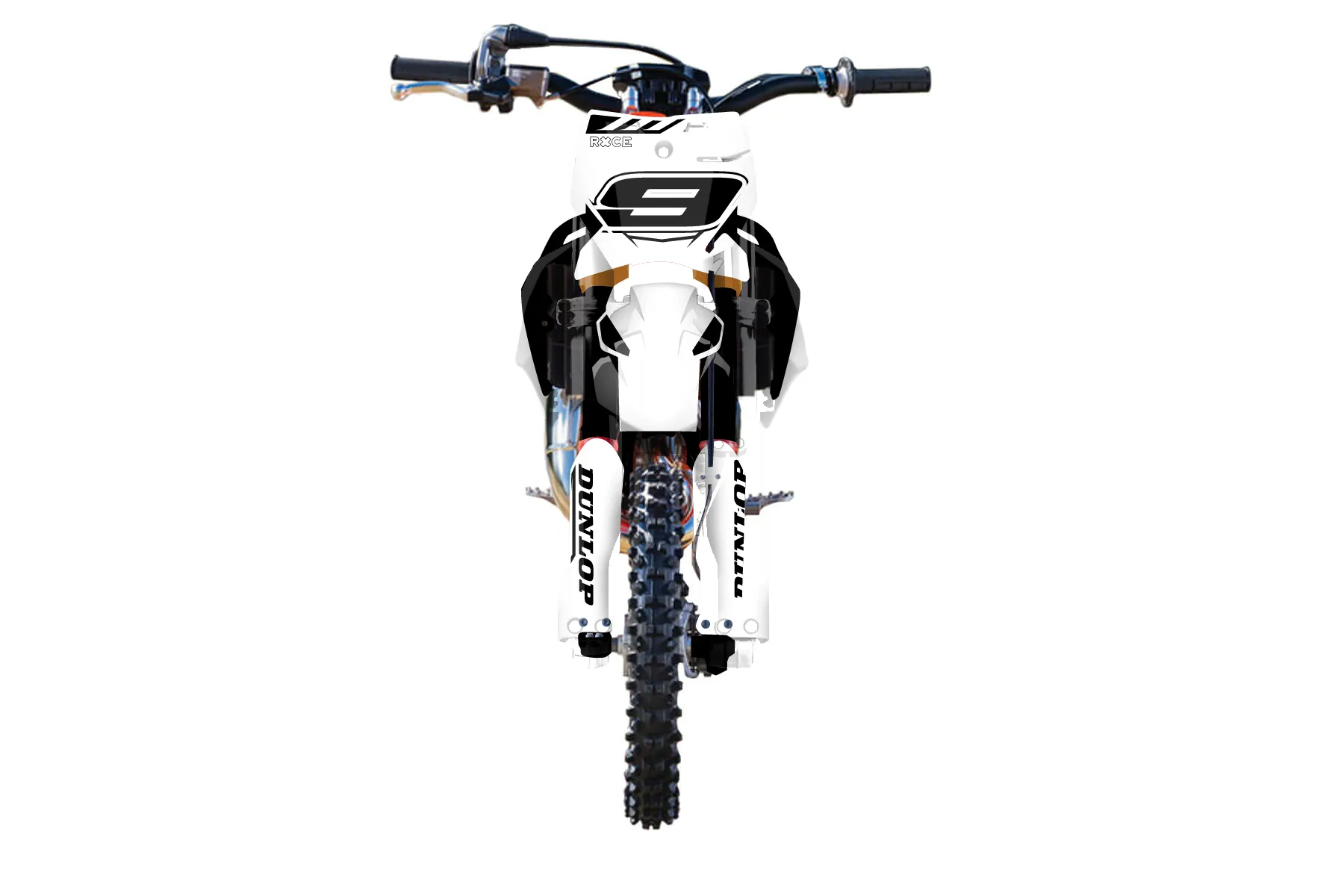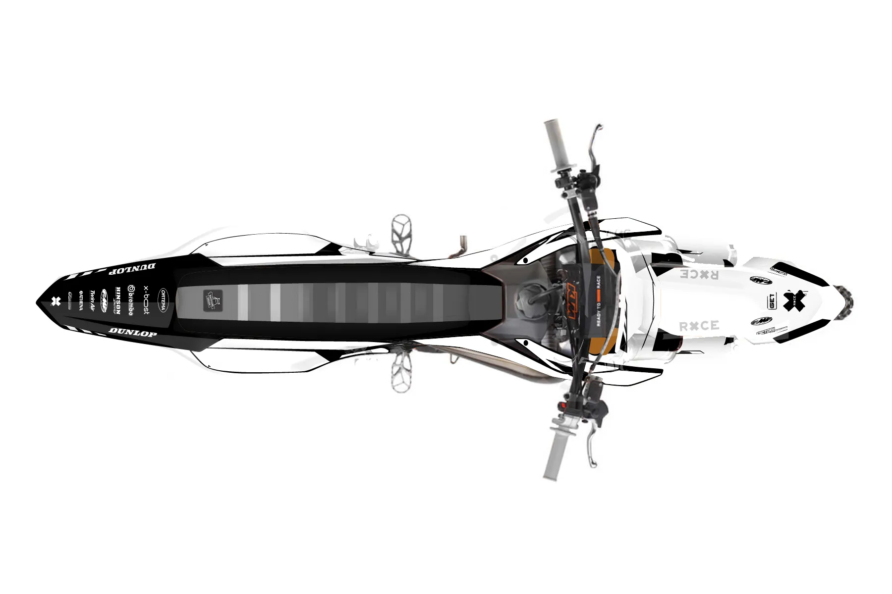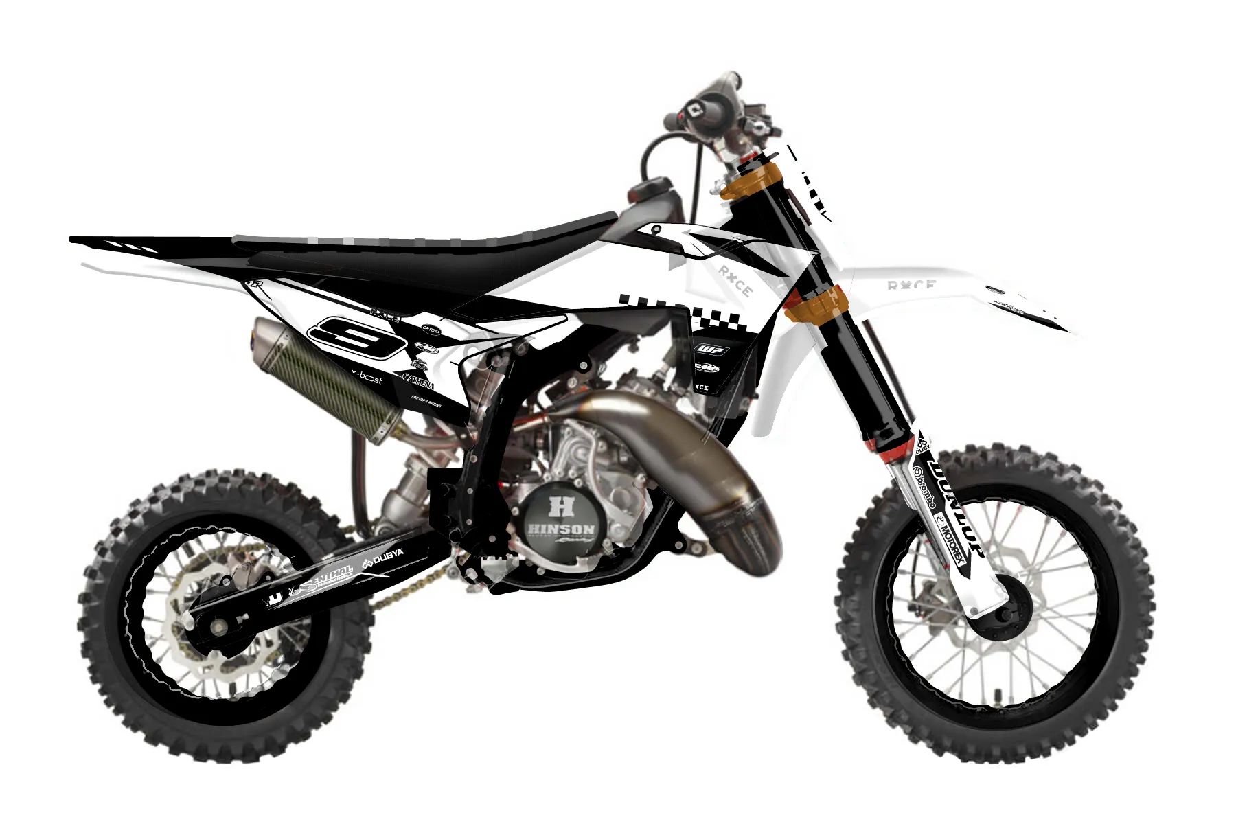 «Alpha» — готовый комплект графики серии Maverick для KTM MX Graphic Kit KTM SX 50 2019. В комплекте: графика на бак и боковые облицовки, крылья (переднее и заднее), передний щиток, номерные таблички, защита вилки. Материал: ПВХ-винил 80 мкр с холодной ламинацией 300 мкр, общая толщина 380 мкр; покрытие глянцевое или матовое на выбор. Устойчив к UV-излучению, воде, бензину и мойке высокого давления. Клей акриловый на сольвентной основе — постоянный, для гибких пластиков. На простых поверхностях монтируется без нагрева; для сложных изгибов рекомендуем фен. Этот пресет можно заказать как есть или взять за основу в конструкторе: поменять цвета, добавить стартовый номер и свой бренд. Производство — 3–5 рабочих дней, доставка по России СДЭКом или Почтой, по СНГ — курьерскими службами.
