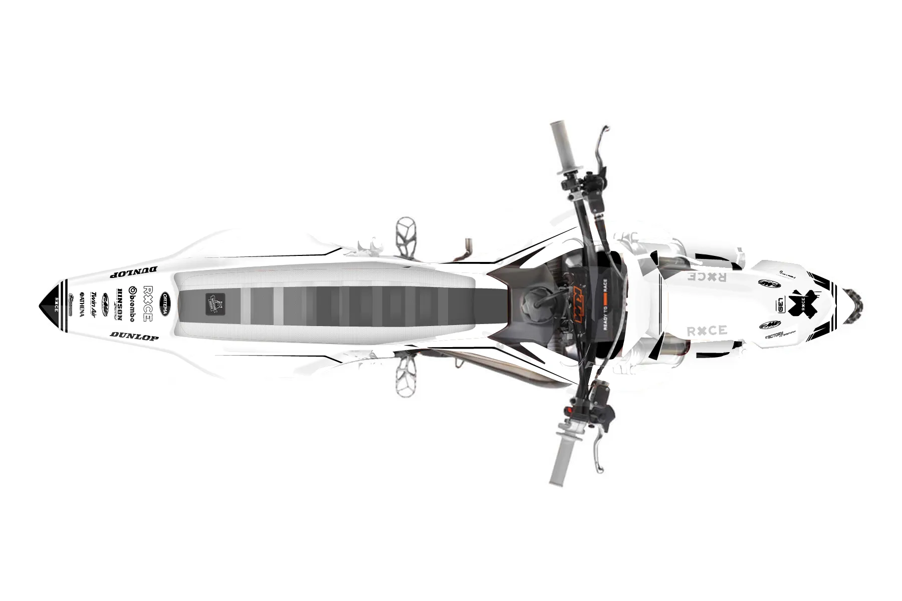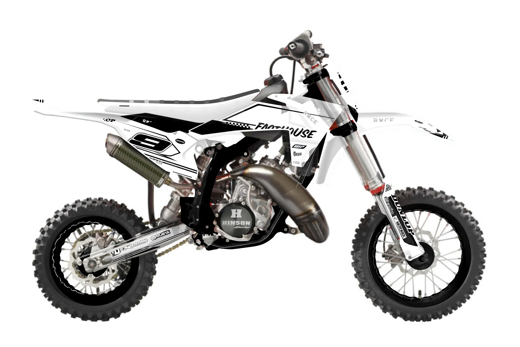 «Speedhouse» — готовый комплект графики серии Untucked для KTM MX Graphic Kit KTM SX 50 2019. В комплекте: графика на бак и боковые облицовки, крылья (переднее и заднее), передний щиток, номерные таблички, защита вилки. Материал: ПВХ-винил 80 мкр с холодной ламинацией 300 мкр, общая толщина 380 мкр; покрытие глянцевое или матовое на выбор. Устойчив к UV-излучению, воде, бензину и мойке высокого давления. Клей акриловый на сольвентной основе — постоянный, для гибких пластиков. На простых поверхностях монтируется без нагрева; для сложных изгибов рекомендуем фен. Этот пресет можно заказать как есть или взять за основу в конструкторе: поменять цвета, добавить стартовый номер и свой бренд. Производство — 3–5 рабочих дней, доставка по России СДЭКом или Почтой, по СНГ — курьерскими службами.