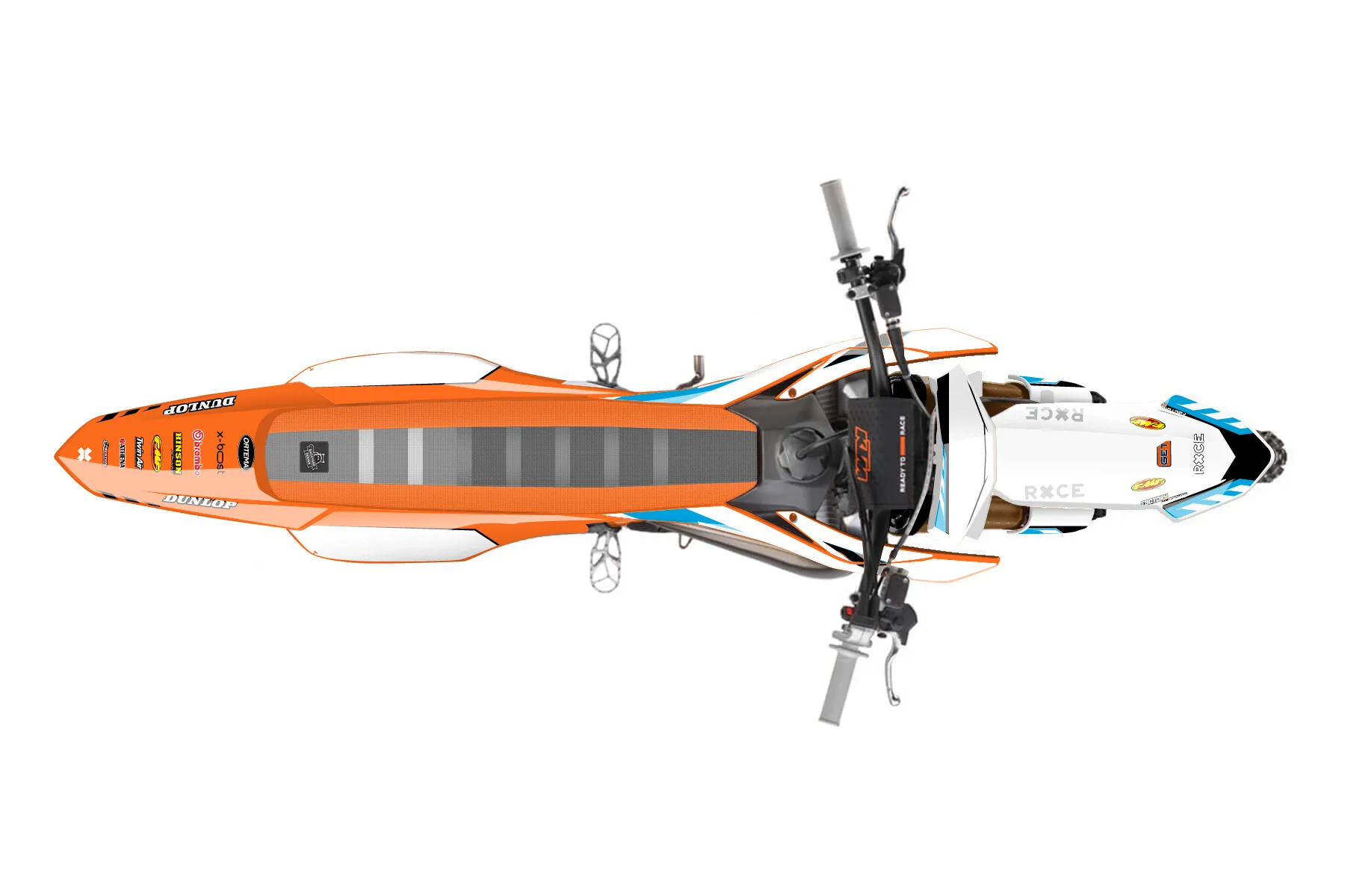 «Beyond» — готовый комплект графики серии Maverick для KTM MX Graphic Kit KTM SX 50 2020. В комплекте: графика на бак и боковые облицовки, крылья (переднее и заднее), передний щиток, номерные таблички, защита вилки. Материал: ПВХ-винил 80 мкр с холодной ламинацией 300 мкр, общая толщина 380 мкр; покрытие глянцевое или матовое на выбор. Устойчив к UV-излучению, воде, бензину и мойке высокого давления. Клей акриловый на сольвентной основе — постоянный, для гибких пластиков. На простых поверхностях монтируется без нагрева; для сложных изгибов рекомендуем фен. Этот пресет можно заказать как есть или взять за основу в конструкторе: поменять цвета, добавить стартовый номер и свой бренд. Производство — 3–5 рабочих дней, доставка по России СДЭКом или Почтой, по СНГ — курьерскими службами.