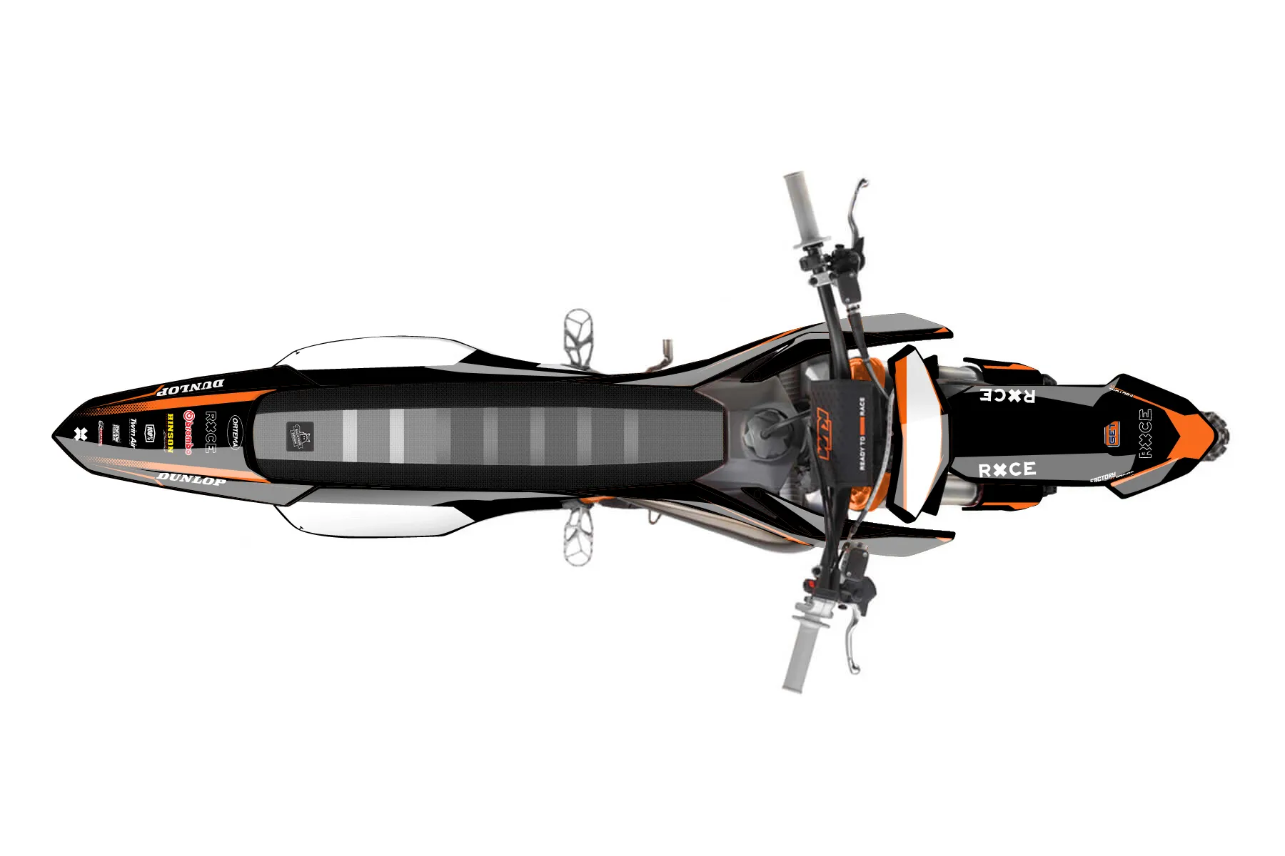 «CustomDesign» — готовый комплект графики серии Maverick для KTM MX Graphic Kit KTM SX 50 2020. В комплекте: графика на бак и боковые облицовки, крылья (переднее и заднее), передний щиток, номерные таблички, защита вилки. Материал: ПВХ-винил 80 мкр с холодной ламинацией 300 мкр, общая толщина 380 мкр; покрытие глянцевое или матовое на выбор. Устойчив к UV-излучению, воде, бензину и мойке высокого давления. Клей акриловый на сольвентной основе — постоянный, для гибких пластиков. На простых поверхностях монтируется без нагрева; для сложных изгибов рекомендуем фен. Этот пресет можно заказать как есть или взять за основу в конструкторе: поменять цвета, добавить стартовый номер и свой бренд. Производство — 3–5 рабочих дней, доставка по России СДЭКом или Почтой, по СНГ — курьерскими службами.