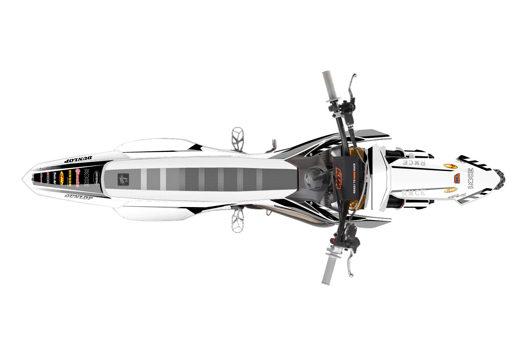 «Signature» — готовый комплект графики серии Maverick для KTM MX Graphic Kit KTM SX 50 2020. В комплекте: графика на бак и боковые облицовки, крылья (переднее и заднее), передний щиток, номерные таблички, защита вилки. Материал: ПВХ-винил 80 мкр с холодной ламинацией 300 мкр, общая толщина 380 мкр; покрытие глянцевое или матовое на выбор. Устойчив к UV-излучению, воде, бензину и мойке высокого давления. Клей акриловый на сольвентной основе — постоянный, для гибких пластиков. На простых поверхностях монтируется без нагрева; для сложных изгибов рекомендуем фен. Этот пресет можно заказать как есть или взять за основу в конструкторе: поменять цвета, добавить стартовый номер и свой бренд. Производство — 3–5 рабочих дней, доставка по России СДЭКом или Почтой, по СНГ — курьерскими службами.