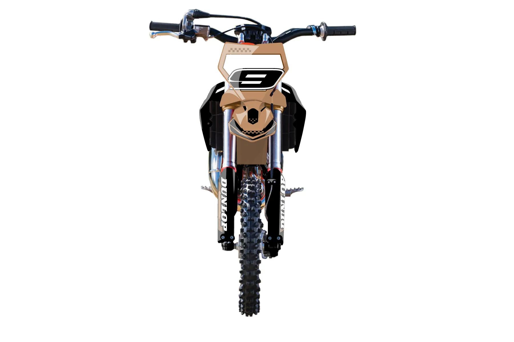 «Bang» — готовый комплект графики серии Staple для KTM MX Graphic Kit KTM SX 50 2020. В комплекте: графика на бак и боковые облицовки, крылья (переднее и заднее), передний щиток, номерные таблички, защита вилки. Материал: ПВХ-винил 80 мкр с холодной ламинацией 300 мкр, общая толщина 380 мкр; покрытие глянцевое или матовое на выбор. Устойчив к UV-излучению, воде, бензину и мойке высокого давления. Клей акриловый на сольвентной основе — постоянный, для гибких пластиков. На простых поверхностях монтируется без нагрева; для сложных изгибов рекомендуем фен. Этот пресет можно заказать как есть или взять за основу в конструкторе: поменять цвета, добавить стартовый номер и свой бренд. Производство — 3–5 рабочих дней, доставка по России СДЭКом или Почтой, по СНГ — курьерскими службами.