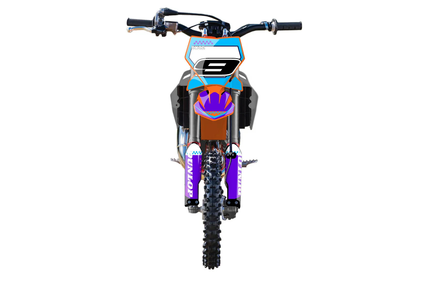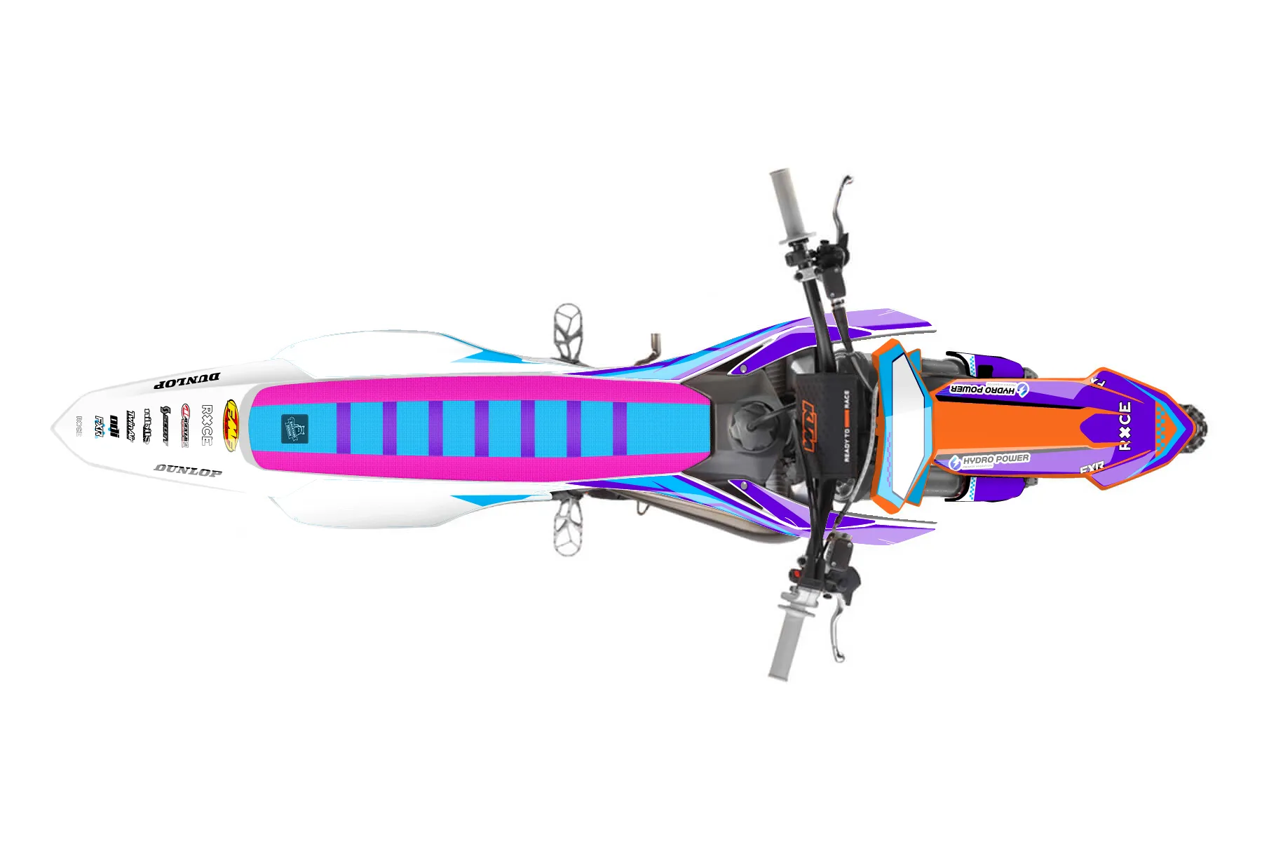 «Mia 2022 Factory Bike» — готовый комплект графики серии Staple для KTM MX Graphic Kit KTM SX 50 2020. В комплекте: графика на бак и боковые облицовки, крылья (переднее и заднее), передний щиток, номерные таблички, защита вилки. Материал: ПВХ-винил 80 мкр с холодной ламинацией 300 мкр, общая толщина 380 мкр; покрытие глянцевое или матовое на выбор. Устойчив к UV-излучению, воде, бензину и мойке высокого давления. Клей акриловый на сольвентной основе — постоянный, для гибких пластиков. На простых поверхностях монтируется без нагрева; для сложных изгибов рекомендуем фен. Этот пресет можно заказать как есть или взять за основу в конструкторе: поменять цвета, добавить стартовый номер и свой бренд. Производство — 3–5 рабочих дней, доставка по России СДЭКом или Почтой, по СНГ — курьерскими службами.