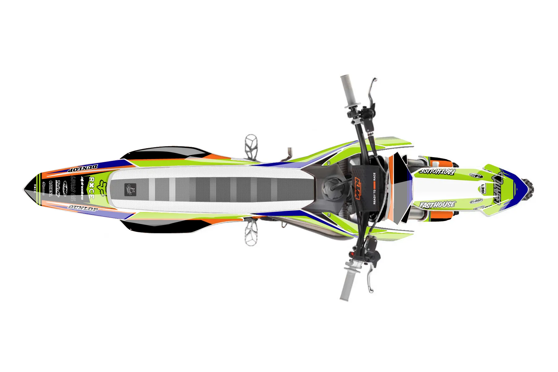 «final» — готовый комплект графики серии Untucked для KTM MX Graphic Kit KTM SX 50 2020. В комплекте: графика на бак и боковые облицовки, крылья (переднее и заднее), передний щиток, номерные таблички, защита вилки. Материал: ПВХ-винил 80 мкр с холодной ламинацией 300 мкр, общая толщина 380 мкр; покрытие глянцевое или матовое на выбор. Устойчив к UV-излучению, воде, бензину и мойке высокого давления. Клей акриловый на сольвентной основе — постоянный, для гибких пластиков. На простых поверхностях монтируется без нагрева; для сложных изгибов рекомендуем фен. Этот пресет можно заказать как есть или взять за основу в конструкторе: поменять цвета, добавить стартовый номер и свой бренд. Производство — 3–5 рабочих дней, доставка по России СДЭКом или Почтой, по СНГ — курьерскими службами.