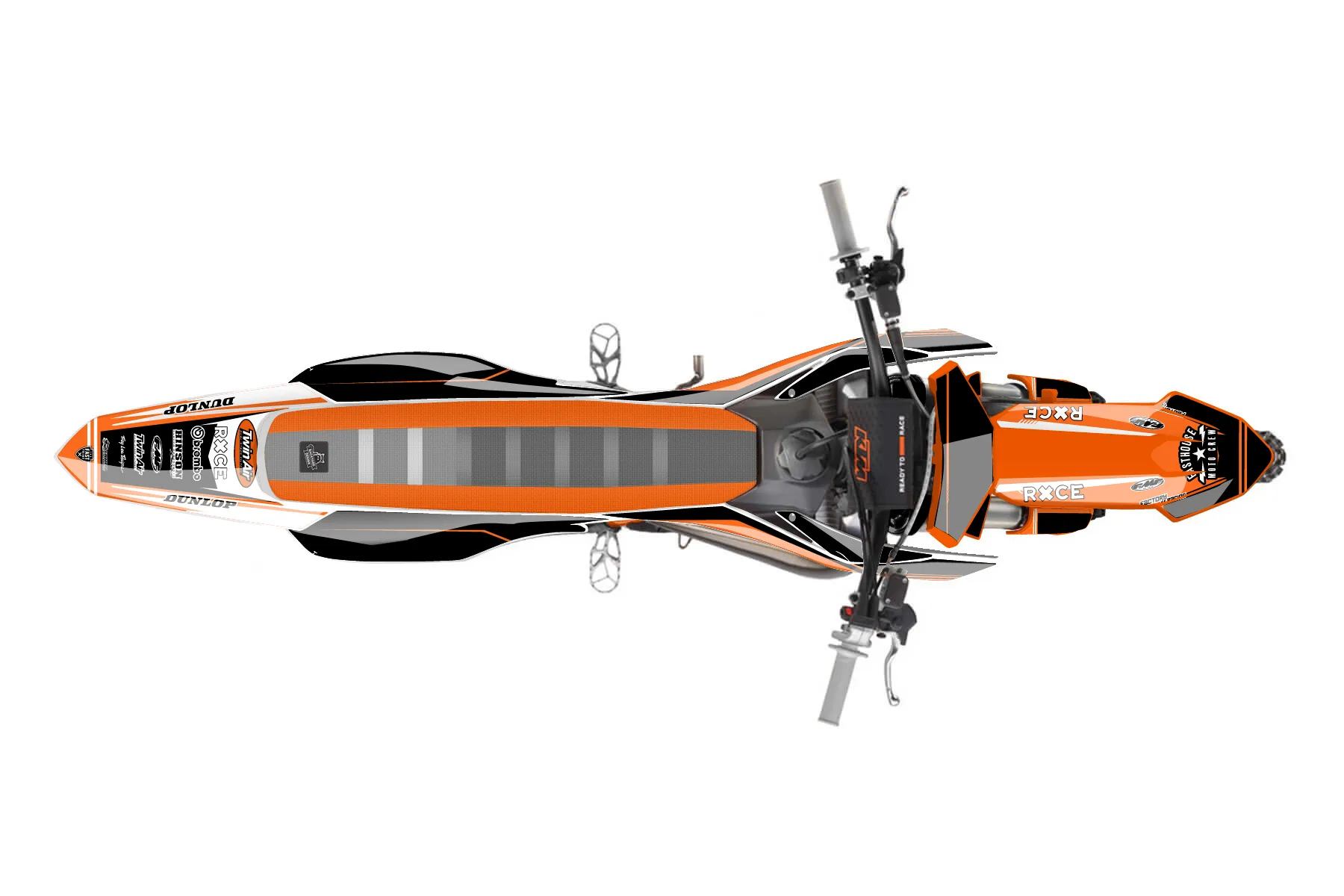 «Ryder» — готовый комплект графики серии Untucked для KTM MX Graphic Kit KTM SX 50 2020. В комплекте: графика на бак и боковые облицовки, крылья (переднее и заднее), передний щиток, номерные таблички, защита вилки. Материал: ПВХ-винил 80 мкр с холодной ламинацией 300 мкр, общая толщина 380 мкр; покрытие глянцевое или матовое на выбор. Устойчив к UV-излучению, воде, бензину и мойке высокого давления. Клей акриловый на сольвентной основе — постоянный, для гибких пластиков. На простых поверхностях монтируется без нагрева; для сложных изгибов рекомендуем фен. Этот пресет можно заказать как есть или взять за основу в конструкторе: поменять цвета, добавить стартовый номер и свой бренд. Производство — 3–5 рабочих дней, доставка по России СДЭКом или Почтой, по СНГ — курьерскими службами.