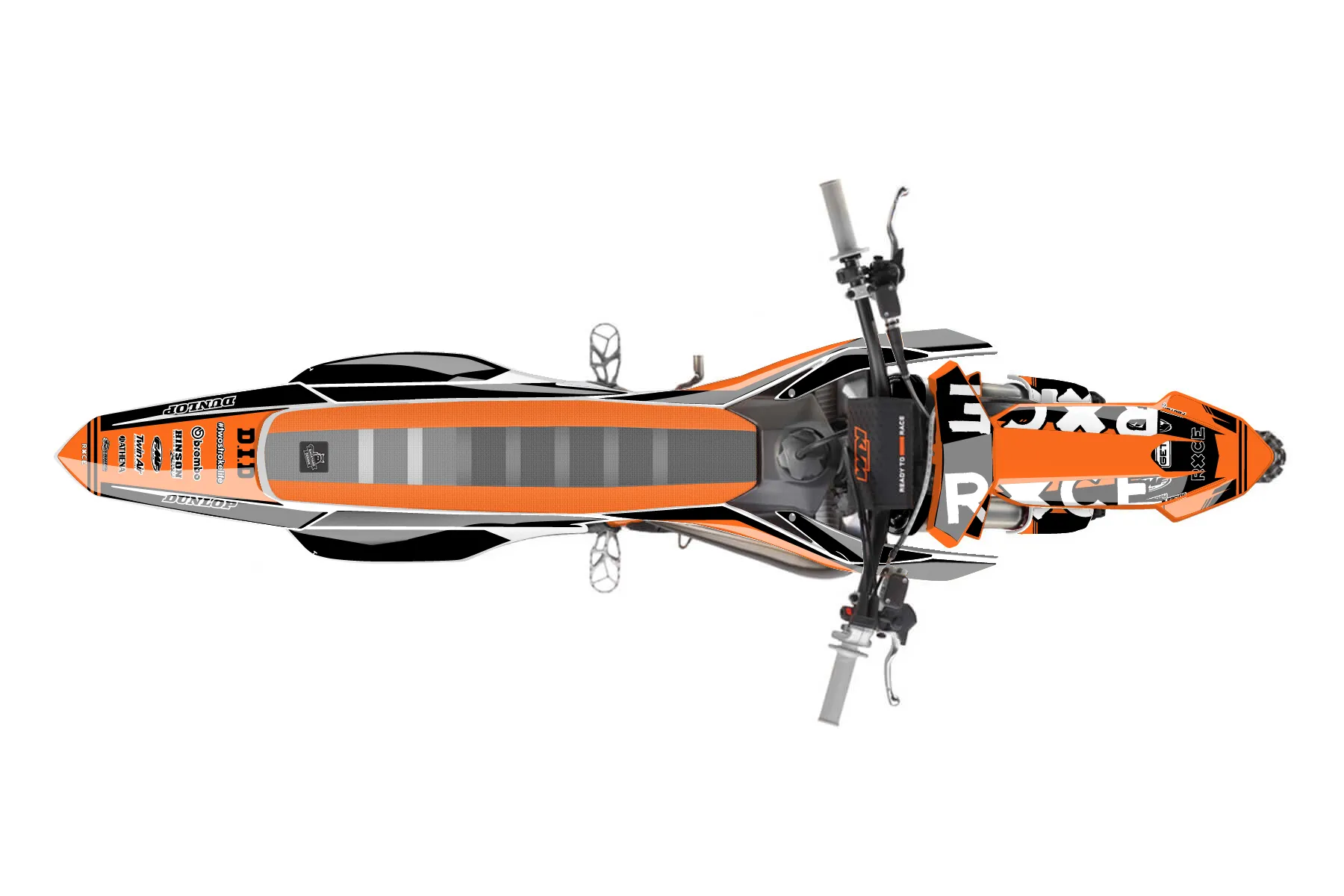 «tfurr1922» — готовый комплект графики серии Untucked для KTM MX Graphic Kit KTM SX 50 2020. В комплекте: графика на бак и боковые облицовки, крылья (переднее и заднее), передний щиток, номерные таблички, защита вилки. Материал: ПВХ-винил 80 мкр с холодной ламинацией 300 мкр, общая толщина 380 мкр; покрытие глянцевое или матовое на выбор. Устойчив к UV-излучению, воде, бензину и мойке высокого давления. Клей акриловый на сольвентной основе — постоянный, для гибких пластиков. На простых поверхностях монтируется без нагрева; для сложных изгибов рекомендуем фен. Этот пресет можно заказать как есть или взять за основу в конструкторе: поменять цвета, добавить стартовый номер и свой бренд. Производство — 3–5 рабочих дней, доставка по России СДЭКом или Почтой, по СНГ — курьерскими службами.