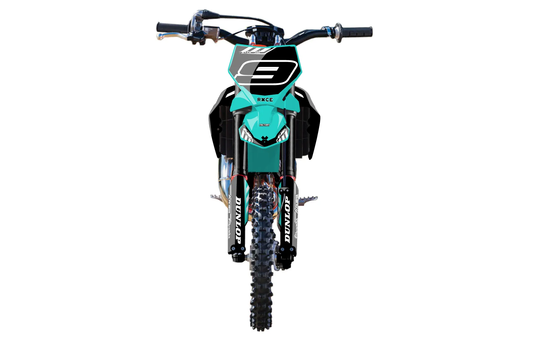 «Refuse» — готовый комплект графики серии Maverick для KTM MX Graphic Kit KTM SX 50 2024. В комплекте: графика на бак и боковые облицовки, крылья (переднее и заднее), передний щиток, номерные таблички, защита вилки. Материал: ПВХ-винил 80 мкр с холодной ламинацией 300 мкр, общая толщина 380 мкр; покрытие глянцевое или матовое на выбор. Устойчив к UV-излучению, воде, бензину и мойке высокого давления. Клей акриловый на сольвентной основе — постоянный, для гибких пластиков. На простых поверхностях монтируется без нагрева; для сложных изгибов рекомендуем фен. Этот пресет можно заказать как есть или взять за основу в конструкторе: поменять цвета, добавить стартовый номер и свой бренд. Производство — 3–5 рабочих дней, доставка по России СДЭКом или Почтой, по СНГ — курьерскими службами.