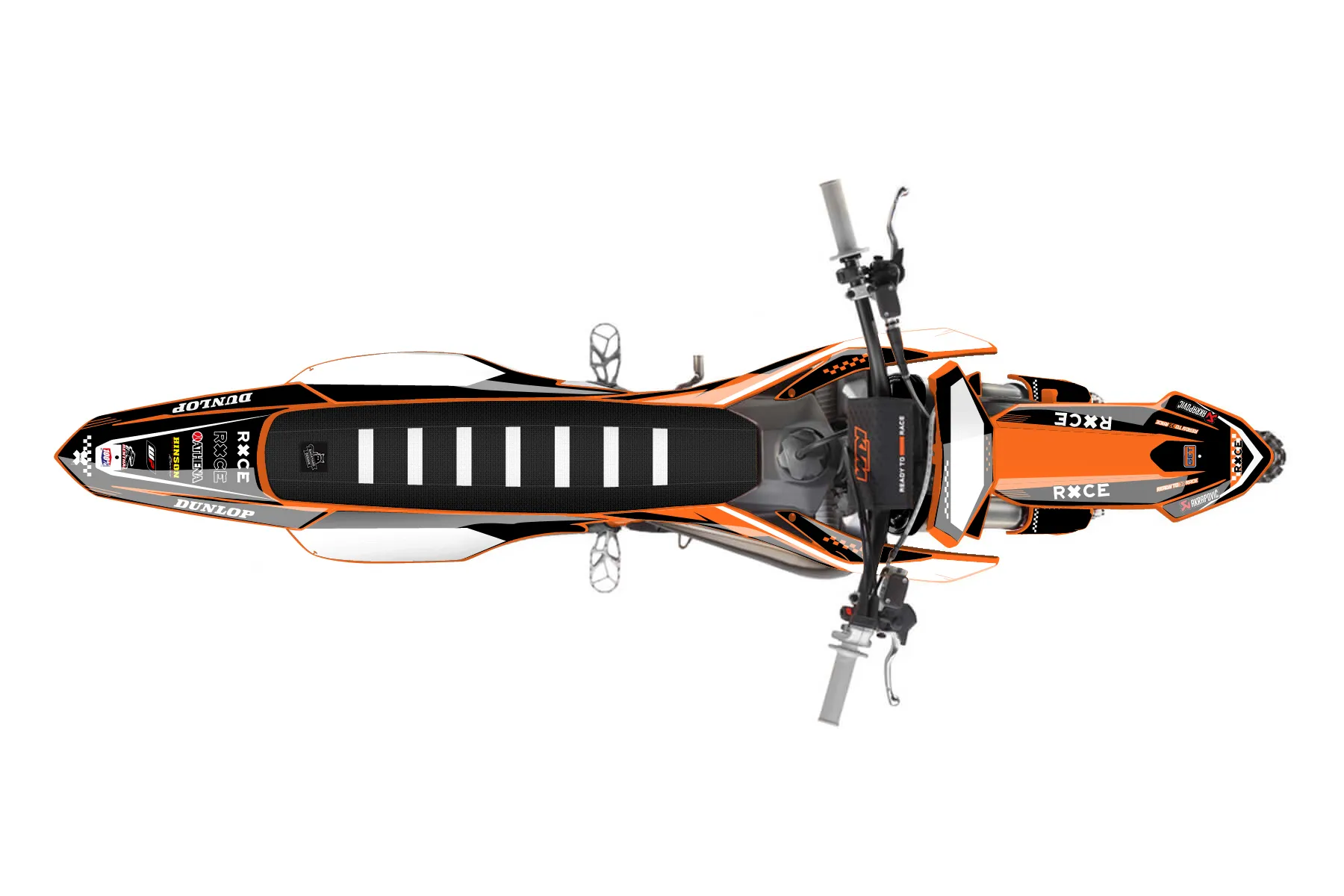 «Raw» — готовый комплект графики серии Staple для KTM MX Graphic Kit KTM SX 50 2024. В комплекте: графика на бак и боковые облицовки, крылья (переднее и заднее), передний щиток, номерные таблички, защита вилки. Материал: ПВХ-винил 80 мкр с холодной ламинацией 300 мкр, общая толщина 380 мкр; покрытие глянцевое или матовое на выбор. Устойчив к UV-излучению, воде, бензину и мойке высокого давления. Клей акриловый на сольвентной основе — постоянный, для гибких пластиков. На простых поверхностях монтируется без нагрева; для сложных изгибов рекомендуем фен. Этот пресет можно заказать как есть или взять за основу в конструкторе: поменять цвета, добавить стартовый номер и свой бренд. Производство — 3–5 рабочих дней, доставка по России СДЭКом или Почтой, по СНГ — курьерскими службами.