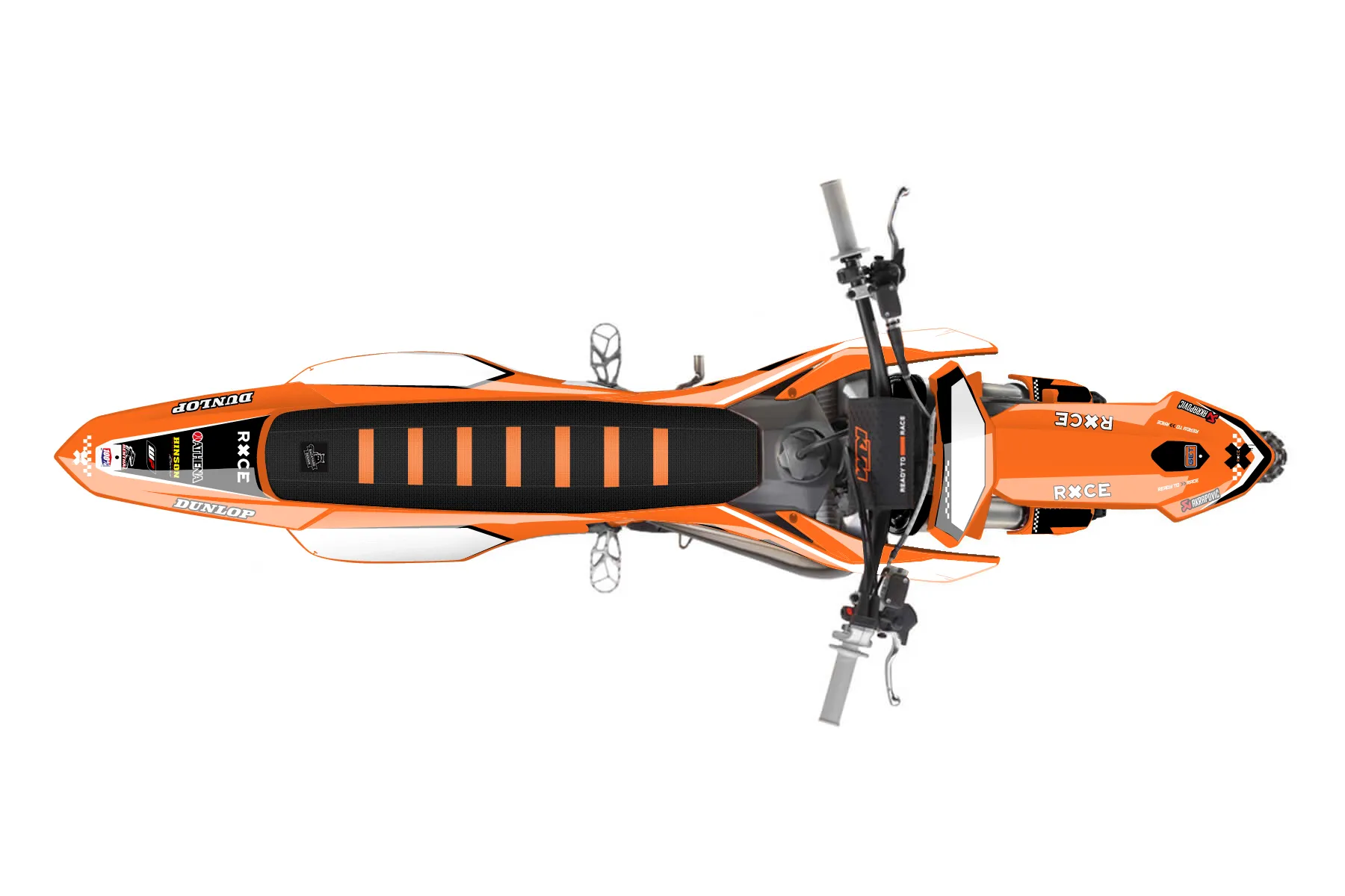 «Volt» — готовый комплект графики серии Staple для KTM MX Graphic Kit KTM SX 50 2024. В комплекте: графика на бак и боковые облицовки, крылья (переднее и заднее), передний щиток, номерные таблички, защита вилки. Материал: ПВХ-винил 80 мкр с холодной ламинацией 300 мкр, общая толщина 380 мкр; покрытие глянцевое или матовое на выбор. Устойчив к UV-излучению, воде, бензину и мойке высокого давления. Клей акриловый на сольвентной основе — постоянный, для гибких пластиков. На простых поверхностях монтируется без нагрева; для сложных изгибов рекомендуем фен. Этот пресет можно заказать как есть или взять за основу в конструкторе: поменять цвета, добавить стартовый номер и свой бренд. Производство — 3–5 рабочих дней, доставка по России СДЭКом или Почтой, по СНГ — курьерскими службами.