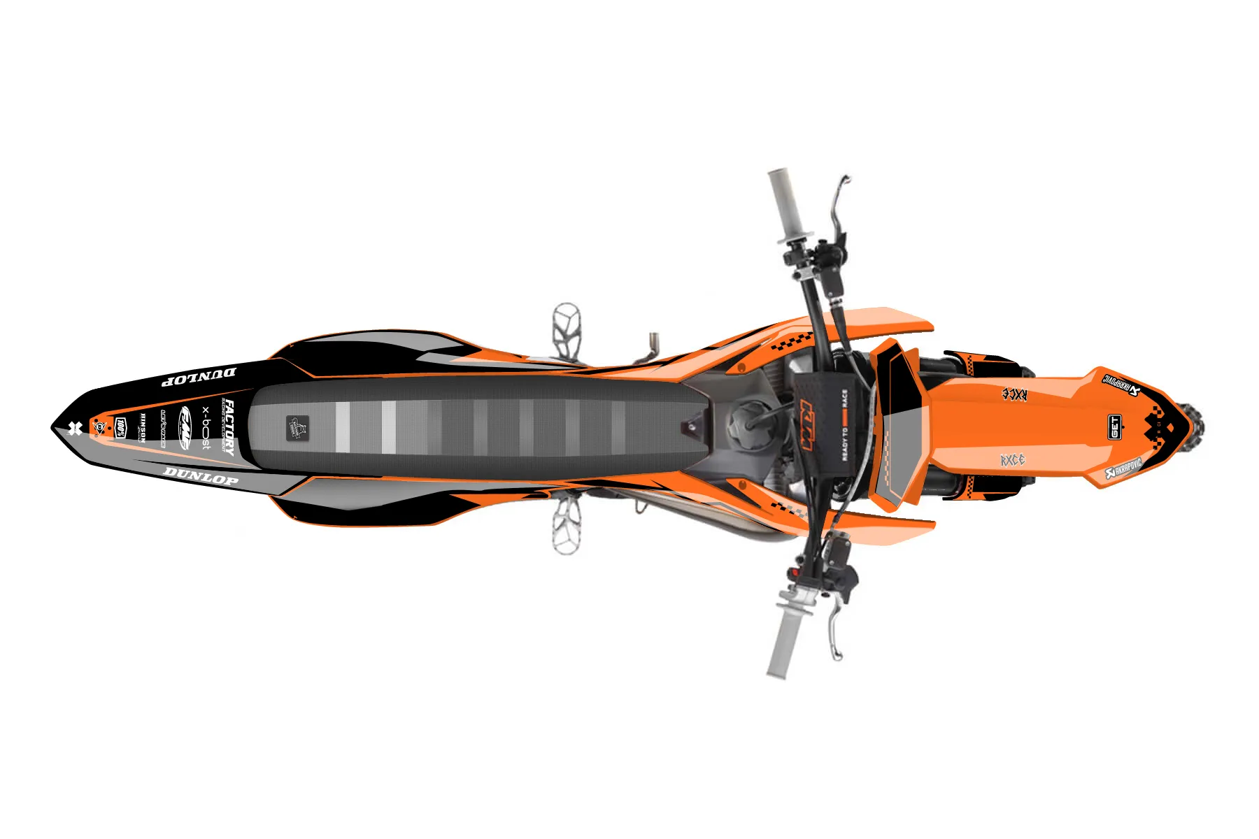 «Trait» — готовый комплект графики серии Staple для KTM MX Graphic Kit KTM SX 65 2009. В комплекте: графика на бак и боковые облицовки, крылья (переднее и заднее), передний щиток, номерные таблички, защита вилки. Материал: ПВХ-винил 80 мкр с холодной ламинацией 300 мкр, общая толщина 380 мкр; покрытие глянцевое или матовое на выбор. Устойчив к UV-излучению, воде, бензину и мойке высокого давления. Клей акриловый на сольвентной основе — постоянный, для гибких пластиков. На простых поверхностях монтируется без нагрева; для сложных изгибов рекомендуем фен. Этот пресет можно заказать как есть или взять за основу в конструкторе: поменять цвета, добавить стартовый номер и свой бренд. Производство — 3–5 рабочих дней, доставка по России СДЭКом или Почтой, по СНГ — курьерскими службами.