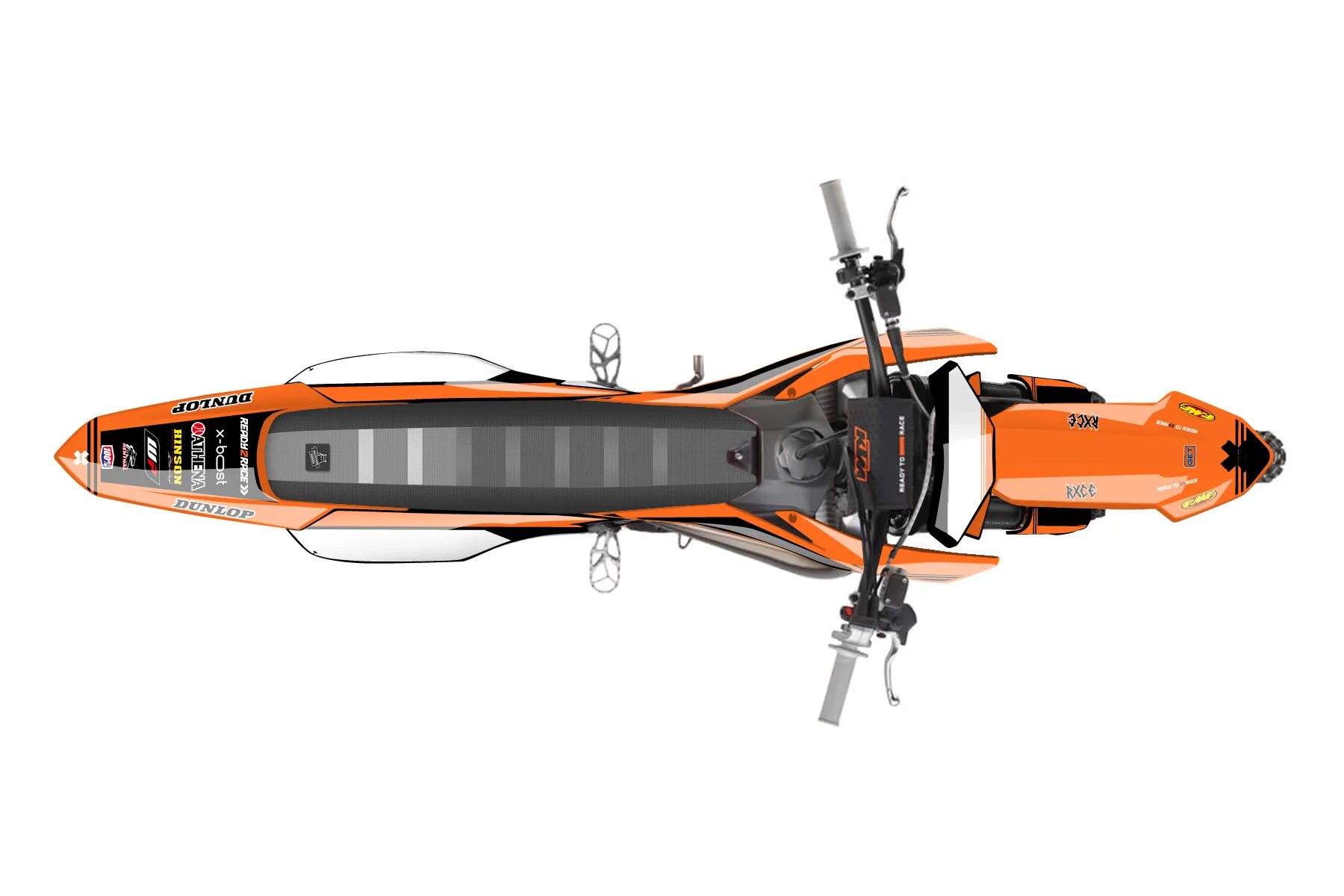 «Intact» — готовый комплект графики серии Untucked для KTM MX Graphic Kit KTM SX 65 2009. В комплекте: графика на бак и боковые облицовки, крылья (переднее и заднее), передний щиток, номерные таблички, защита вилки. Материал: ПВХ-винил 80 мкр с холодной ламинацией 300 мкр, общая толщина 380 мкр; покрытие глянцевое или матовое на выбор. Устойчив к UV-излучению, воде, бензину и мойке высокого давления. Клей акриловый на сольвентной основе — постоянный, для гибких пластиков. На простых поверхностях монтируется без нагрева; для сложных изгибов рекомендуем фен. Этот пресет можно заказать как есть или взять за основу в конструкторе: поменять цвета, добавить стартовый номер и свой бренд. Производство — 3–5 рабочих дней, доставка по России СДЭКом или Почтой, по СНГ — курьерскими службами.