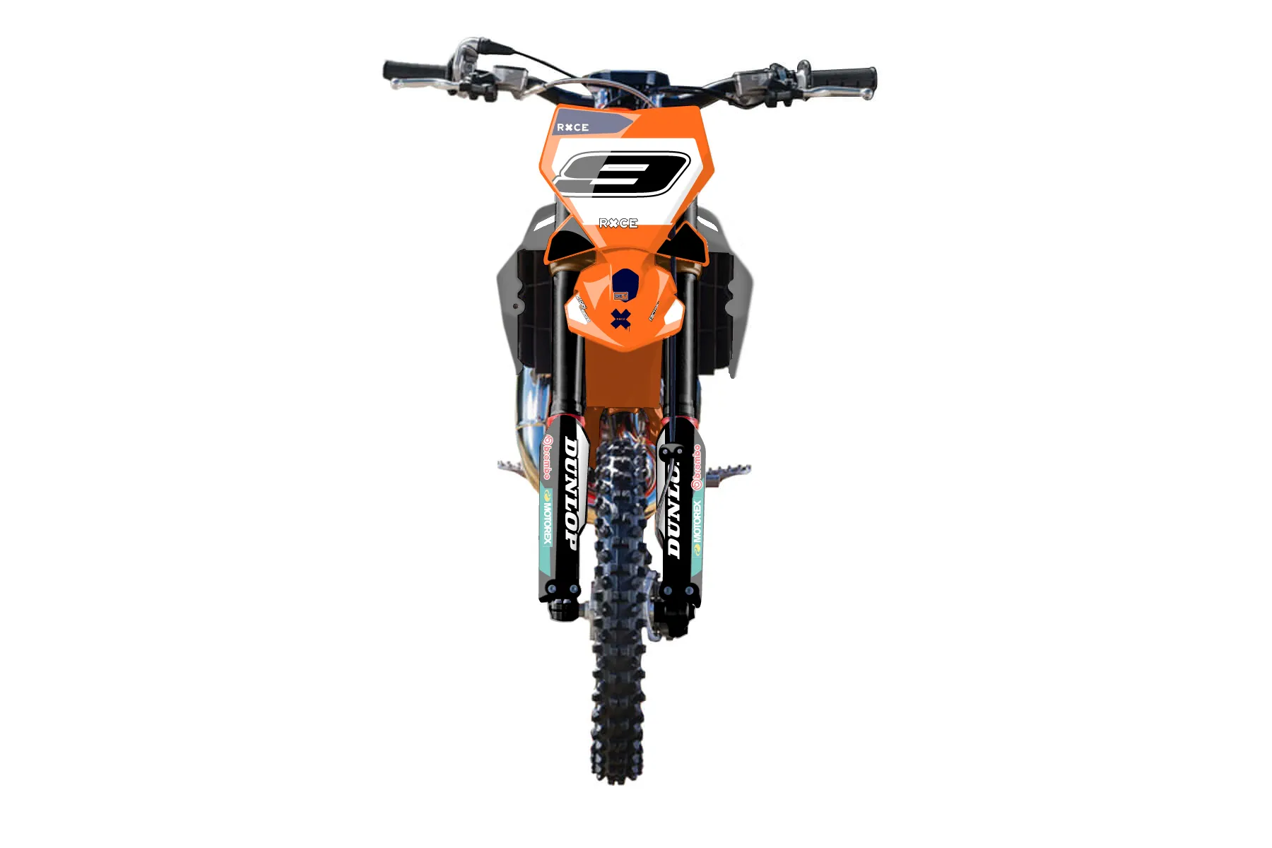 «Thrive» — готовый комплект графики серии Flow для KTM MX Graphic Kit KTM SX 65 2016. В комплекте: графика на бак и боковые облицовки, крылья (переднее и заднее), передний щиток, номерные таблички, защита вилки. Материал: ПВХ-винил 80 мкр с холодной ламинацией 300 мкр, общая толщина 380 мкр; покрытие глянцевое или матовое на выбор. Устойчив к UV-излучению, воде, бензину и мойке высокого давления. Клей акриловый на сольвентной основе — постоянный, для гибких пластиков. На простых поверхностях монтируется без нагрева; для сложных изгибов рекомендуем фен. Этот пресет можно заказать как есть или взять за основу в конструкторе: поменять цвета, добавить стартовый номер и свой бренд. Производство — 3–5 рабочих дней, доставка по России СДЭКом или Почтой, по СНГ — курьерскими службами.