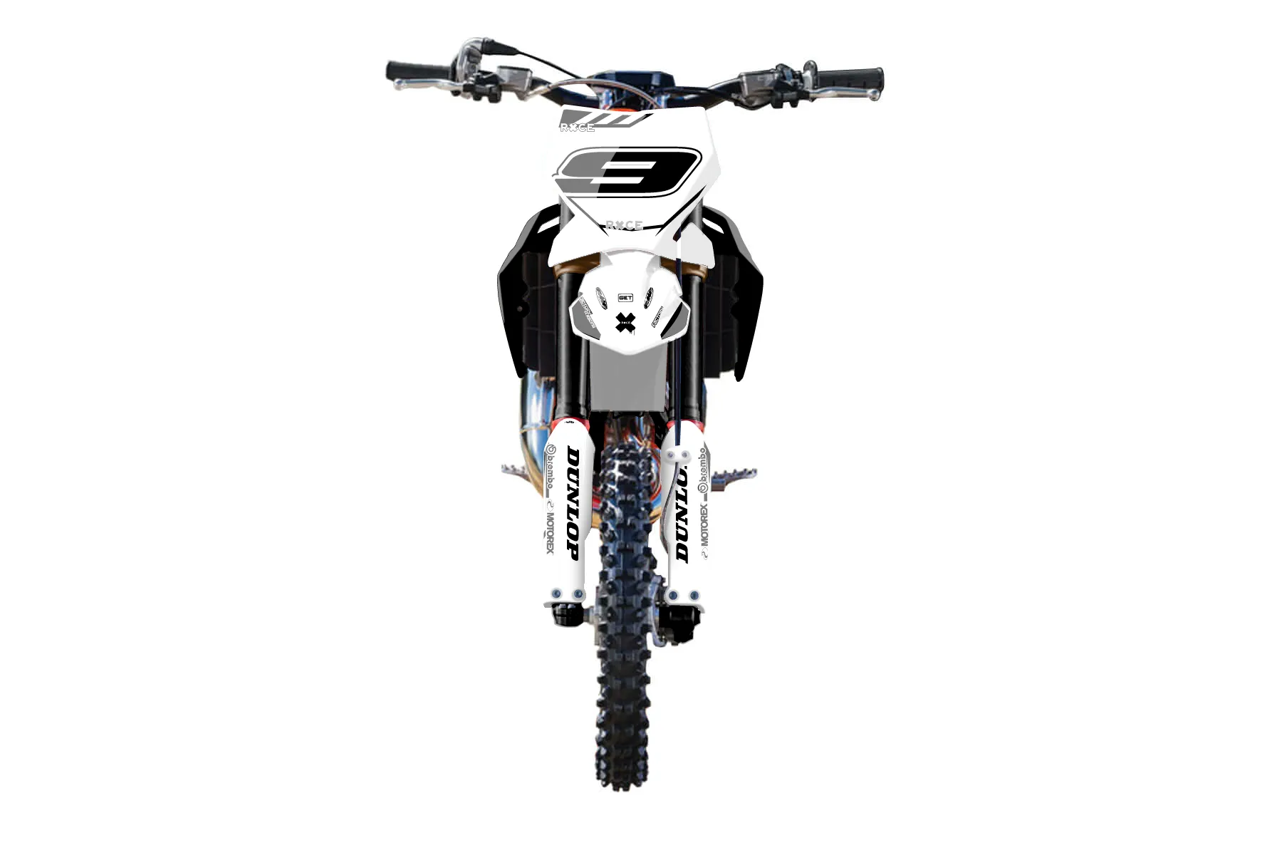 «Alpha» — готовый комплект графики серии Maverick для KTM MX Graphic Kit KTM SX 65 2016. В комплекте: графика на бак и боковые облицовки, крылья (переднее и заднее), передний щиток, номерные таблички, защита вилки. Материал: ПВХ-винил 80 мкр с холодной ламинацией 300 мкр, общая толщина 380 мкр; покрытие глянцевое или матовое на выбор. Устойчив к UV-излучению, воде, бензину и мойке высокого давления. Клей акриловый на сольвентной основе — постоянный, для гибких пластиков. На простых поверхностях монтируется без нагрева; для сложных изгибов рекомендуем фен. Этот пресет можно заказать как есть или взять за основу в конструкторе: поменять цвета, добавить стартовый номер и свой бренд. Производство — 3–5 рабочих дней, доставка по России СДЭКом или Почтой, по СНГ — курьерскими службами.